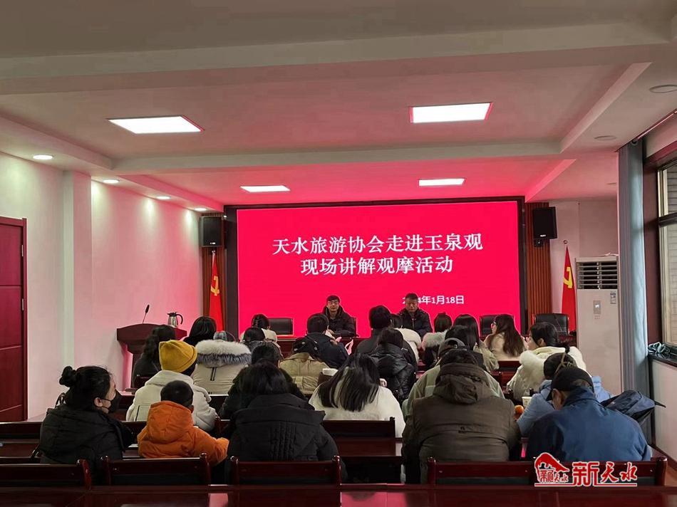 新天水讯【通讯员马岚】1月18 日,天水市旅游协会走进秦州区玉泉观大景区现场讲解观摩,以进一步提升全市导游人员讲解水平,拓展讲解思路,提高对讲解词的现场驾驭能力和讲解准确性。