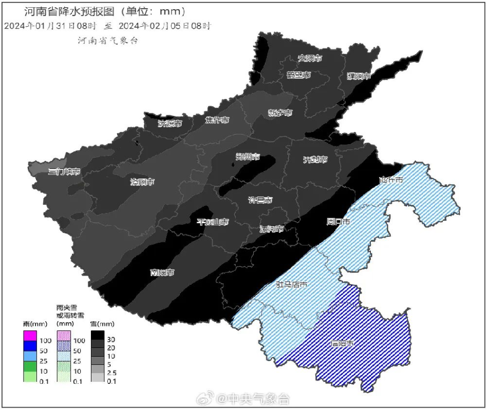 河南省降雨预报图。微博@中央气象台 图