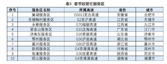 报告还公布了高速公路预计易发生拥堵缓行的路段、收费站以及较繁忙的服务区。