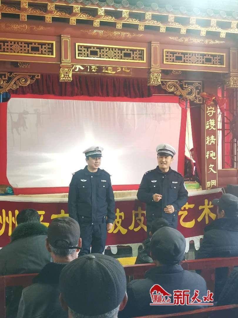 新天水讯【记者吕天军 张明秀】电动车、三轮车、摩托车是老百姓离不开的生产生活交通工具,但在农村群众中,因占道行驶、违法载人、不戴安全头盔等交通违法行为导致的农村道路交通事故呈上升趋势。新年伊始,为了确保大家过个平安年,秦州区郊区交警大队和平南镇皮影戏传承人将传统民俗文化皮影戏同交通安全宣传结合起来,用老百姓喜闻乐见的方式与群众一起“听戏曲、话交通、说平安”。