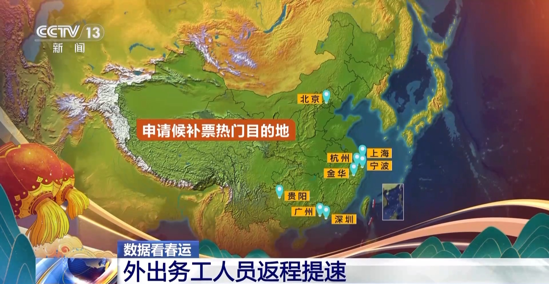 在12306平台申请今天候补火车票的数据显示,随着外出务工人员的返程提速,候补票的热门目的地已经从北上广深,逐渐向贵阳、杭州、金华、宁波等城市扩展。