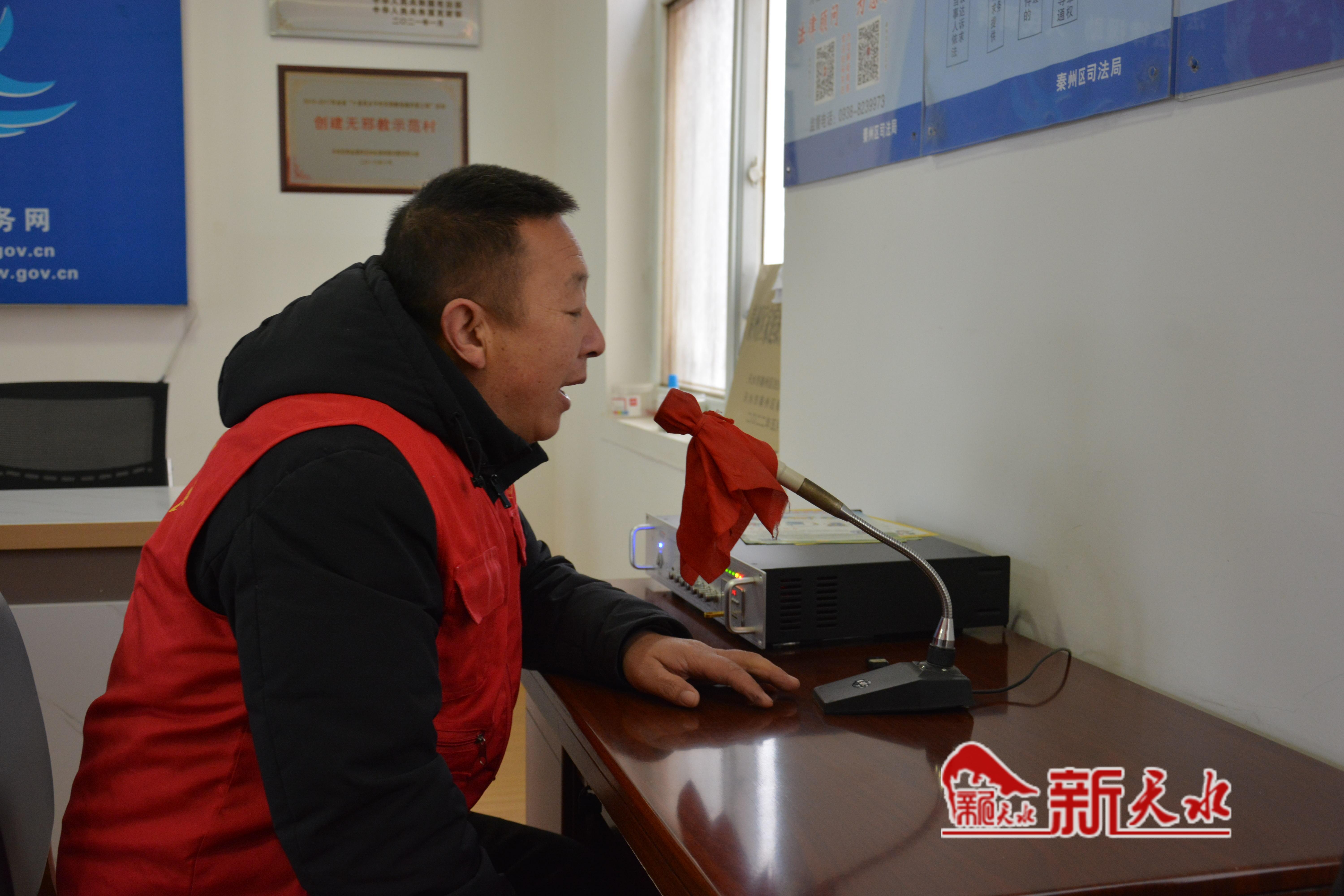 “今天天气有降雪,道路有不同程度结冰,一般情况下我们不提倡大家外出。实在有外出需要的村民群众,一定要记得给车上打防滑链,保障人身安全是第一位的。”2月21日一大早,在秦州区皂郊镇下寨村,一名村干部正在通过村上大喇叭给全村村民宣传道路交通安全提示工作。