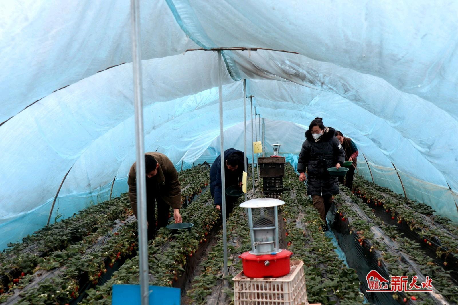 新天水讯【通讯员刘荣华 余宝鹏】 近日,笔者走进秦安县西川镇神明川村草莓采摘体验园看到,一座座大棚整齐划一,棚里种植的草莓长势喜人,放眼望去,一垄垄整齐的绿苗上缀着鲜红的草莓,犹如一颗颗深红油亮的玛瑙,透出春的暖意。许多慕名而来的游客带着采摘盆,穿行在果园中,精心挑选、采摘心仪的草莓。