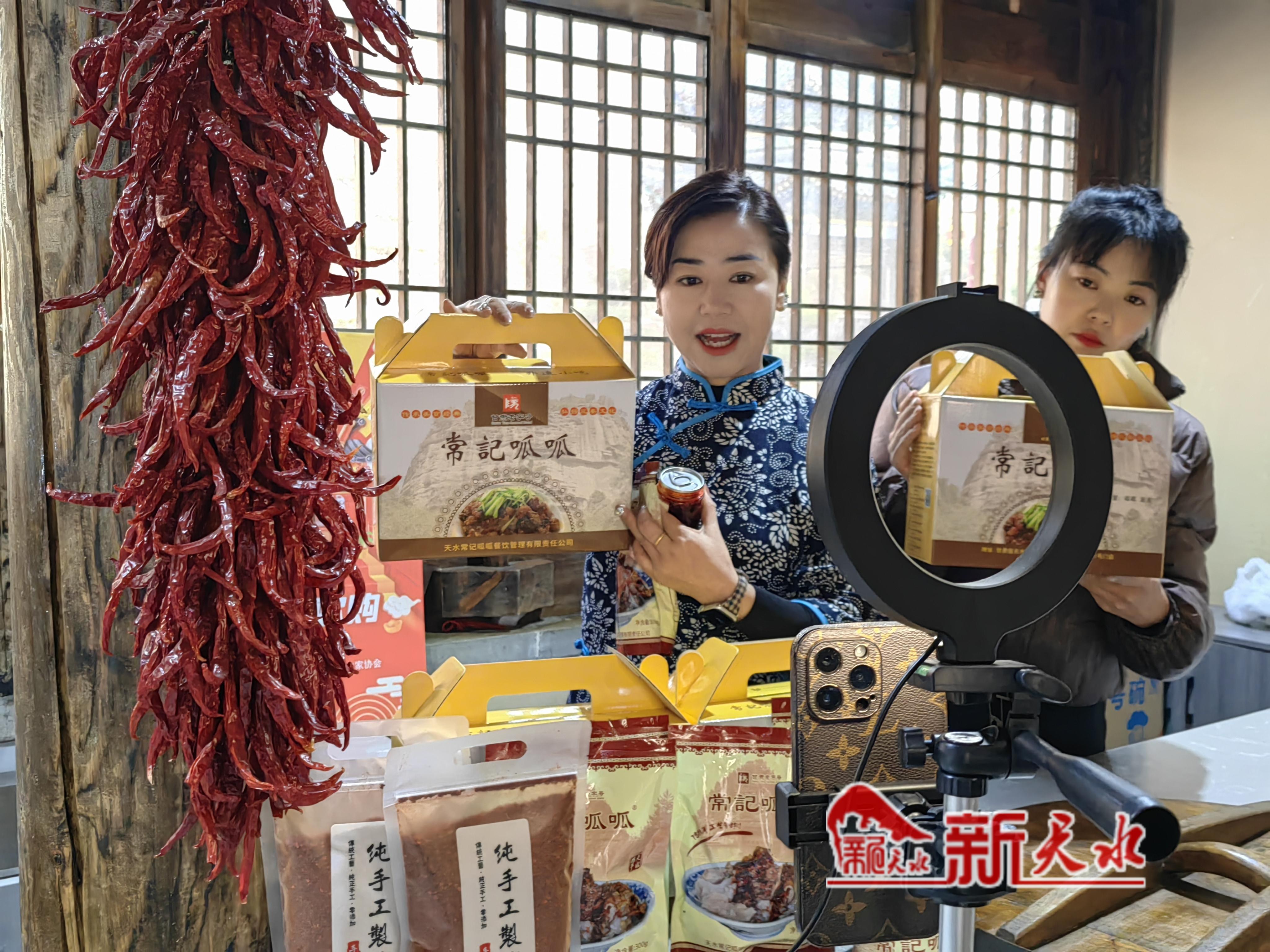“家人们,这就是咱们天水的呱呱,纯荞面制作,低糖、低脂,经常食用还可预防高血压、糖尿病……”3月5日上午,在天水古城一家常记呱呱门店内,常晓旭在直播间里熟练地向粉丝们介绍着地域特色美食——天水呱呱。