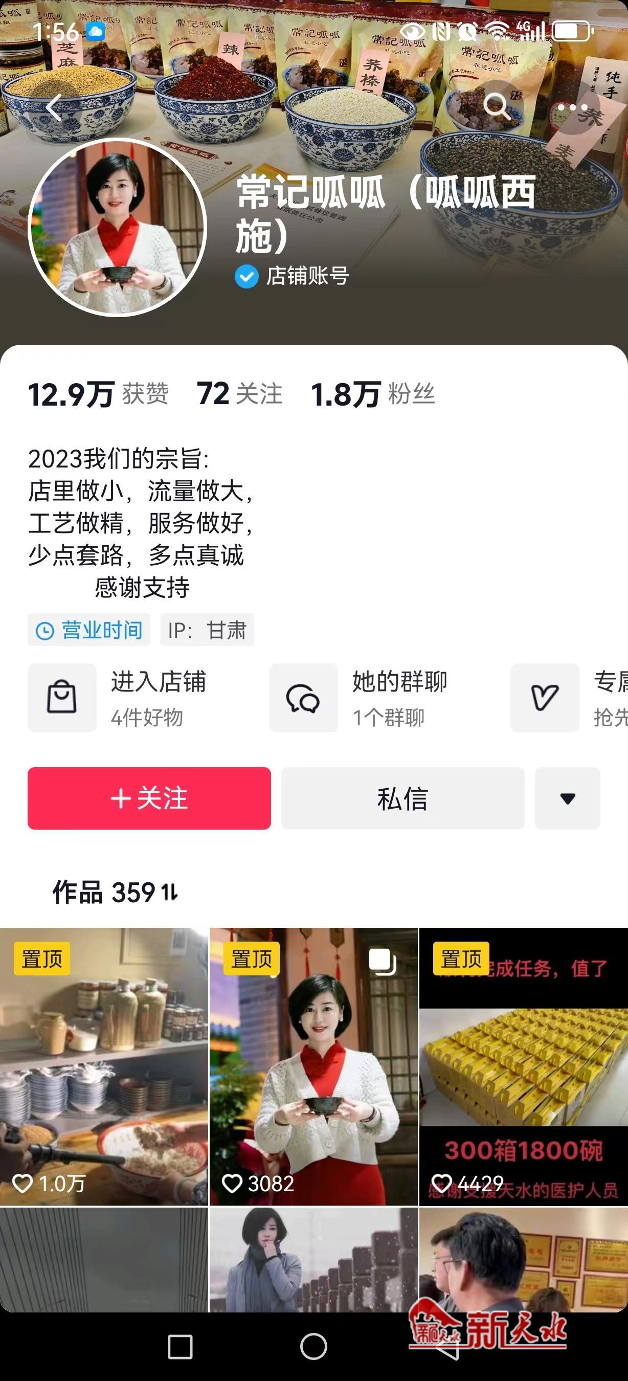 “从粉丝留言里我发现有很多是离家在外的天水人,所以呱呱也成了缠绕在他们舌尖上和抹不去的一丝乡愁。因此,我在直播和做短视频的时候,也经常会拍一些古城、南郭寺等景点的风景,让在外的游子们可以看到咱们天水的巨大变化。”