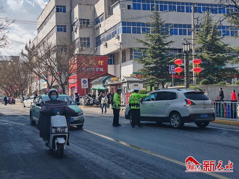 3月13日下午2时许,龙城广场附近,一辆挂着北京号牌的车辆在我市交警的引导下,驾驶员将车停靠在龙城广场南侧临时划定的停车区域。连夜从北京开车赶来天水吃麻辣烫的游客赵先生和同伴表示,他们不熟悉天水路况,按照导航指引行驶至龙城广场附近,正为如何停车犯难时,交警如“及时雨”般出现在他们面前,指引他们将车辆开至停车地点。“天水人真是太热情了,服务周到,点赞!”赵先生连声称赞,随后,一行人在交警的热情推介下,步行前往四合院品尝天水麻辣烫。
