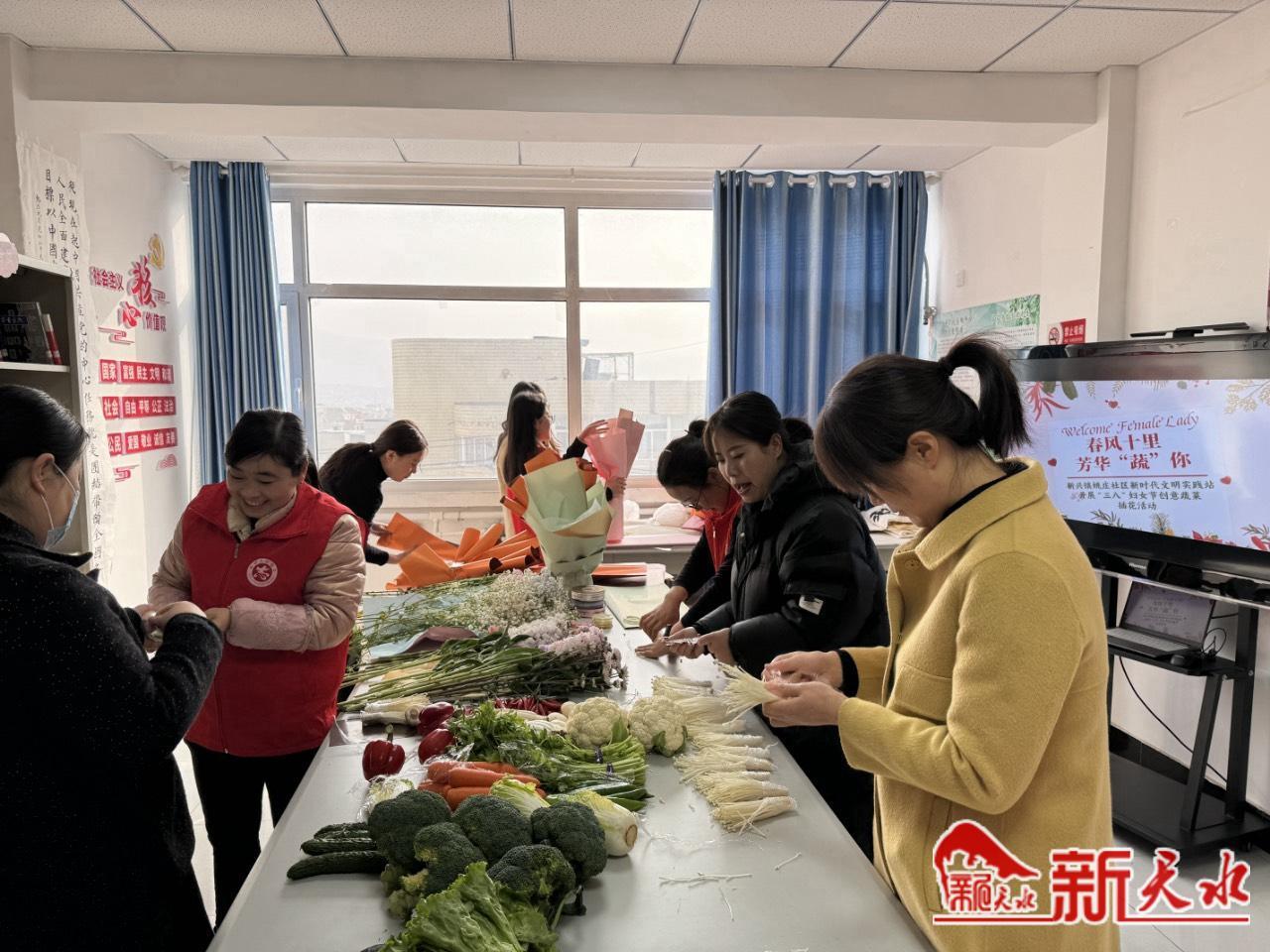 又讯 3月7日,甘谷县新兴镇新时代文明实践所联合姚庄社区妇联、新兴镇市场监督管理所开展了一场别开生面的创意蔬菜插花活动,为在平凡岗位上坚守奉献的广大妇女送上关爱和祝福。