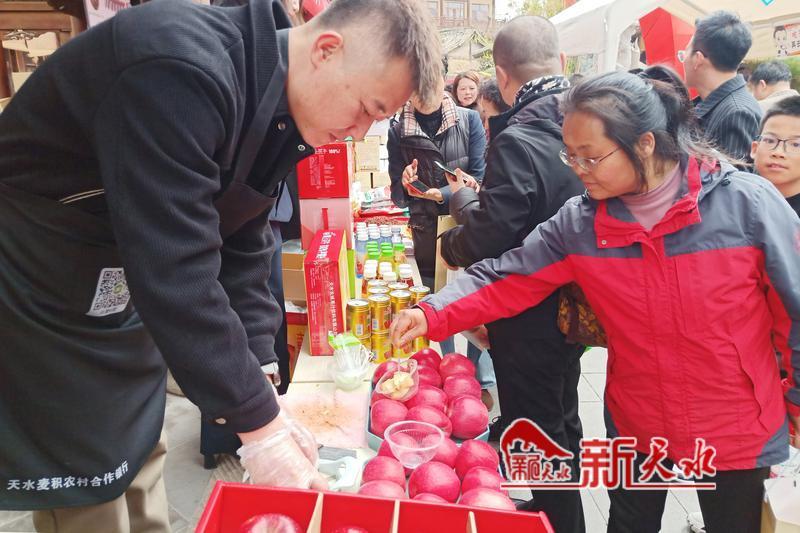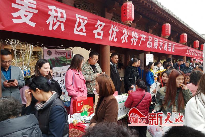 活动现场,麦积区的麻辣烫、米线、面皮等特色小吃摊位前,被品尝、直播和拍照的游客围得水泄不通;手工挂面、辣椒面、元龙花椒等名优农特产品,也吸引着许多游客。