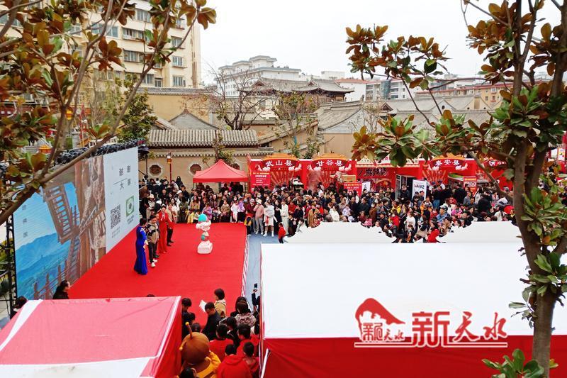 文艺展演开始了,广场中间的椅子已是座无虚席,空余场地也站满了游人。舞蹈、独唱、模特走秀、武术表演等,一个个精彩的节目轮番上演。表演过程中,组织者还穿插推介了麦积区特色美食、景区景点、精品线路、文创产品等。