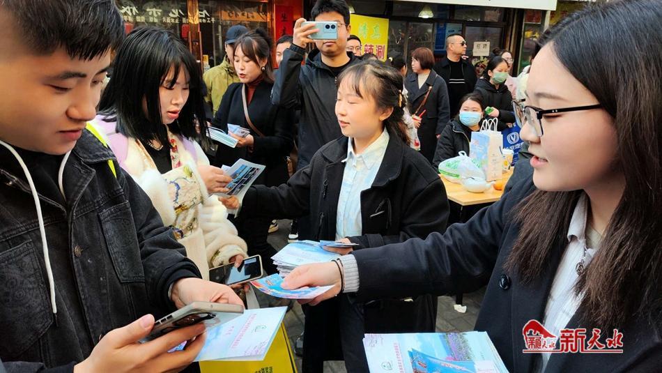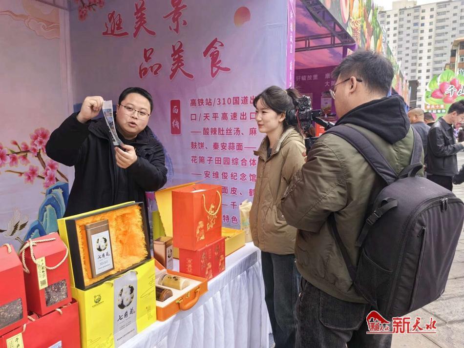 新天水讯 最近“天水麻辣烫”火爆出圈,秦安县千户镇组织党员干部主动出击到天水市农产品展销会接“流量”,在天水古城为外地游客赠送千户花椒、七月菊、杏树湾门票和景区宣传册。千户电商直播团队深入现场进行直播,积极宣传推介杏树湾旅游园区,推介千户七月菊、千户花椒,为发展壮大村集体经济发展“加档提速”。