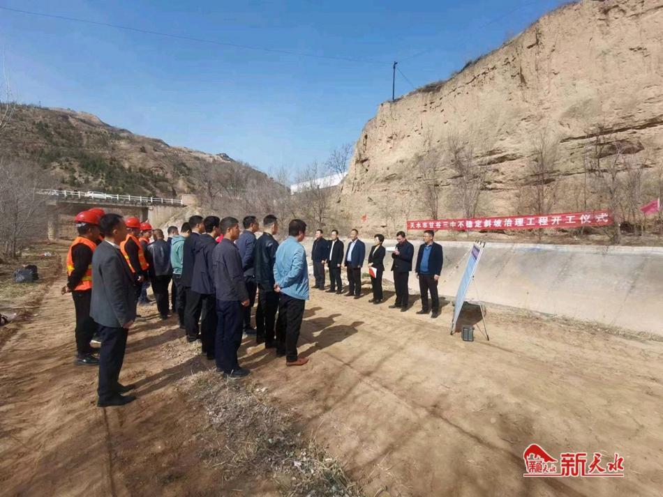 新天水讯 3月20日,甘谷县第三中学不稳定斜坡治理工程项目正式开工。