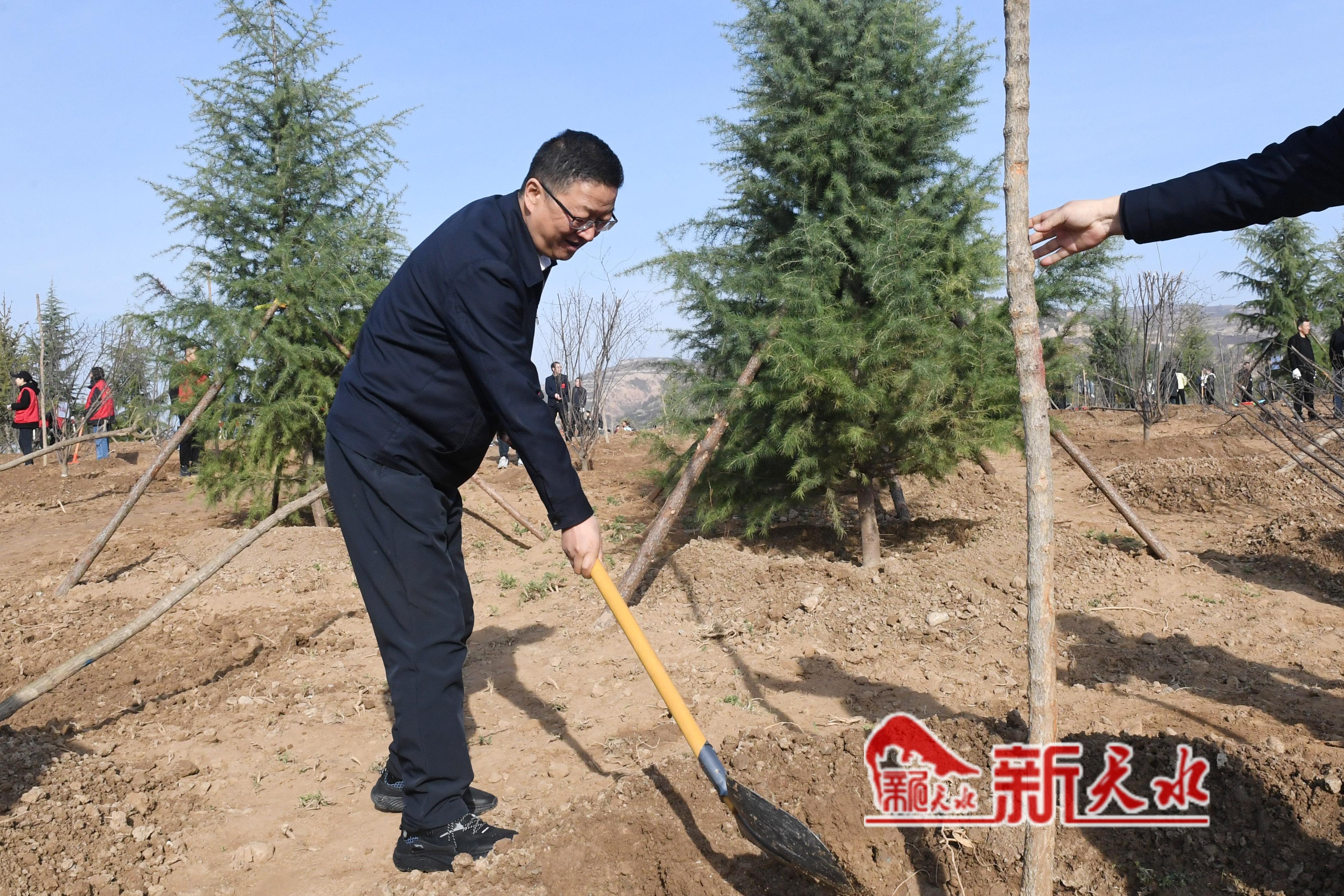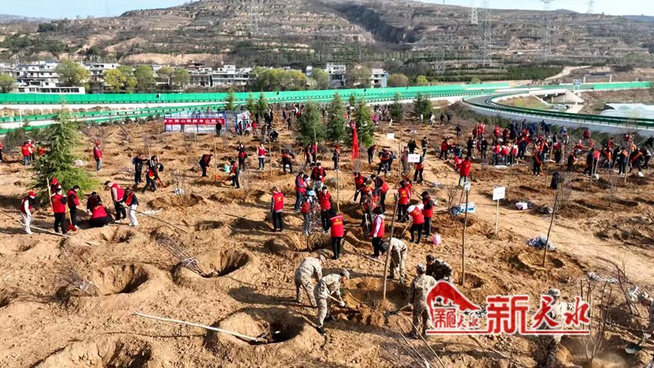 新天水讯【记者王晓馨】春风一拂万象新,植树添绿正当时。3月28日,天水市2024年春季义务植树活动在秦州区太京镇靳家崖村连霍高速天平高速交会处、玉泉镇曹家崖村水家大坡展开。市委书记冯文戈,市委副书记、市长王国先,市政协主席王燕等市领导来到义务植树点,与市区两级干部职工一起参加义务植树活动。