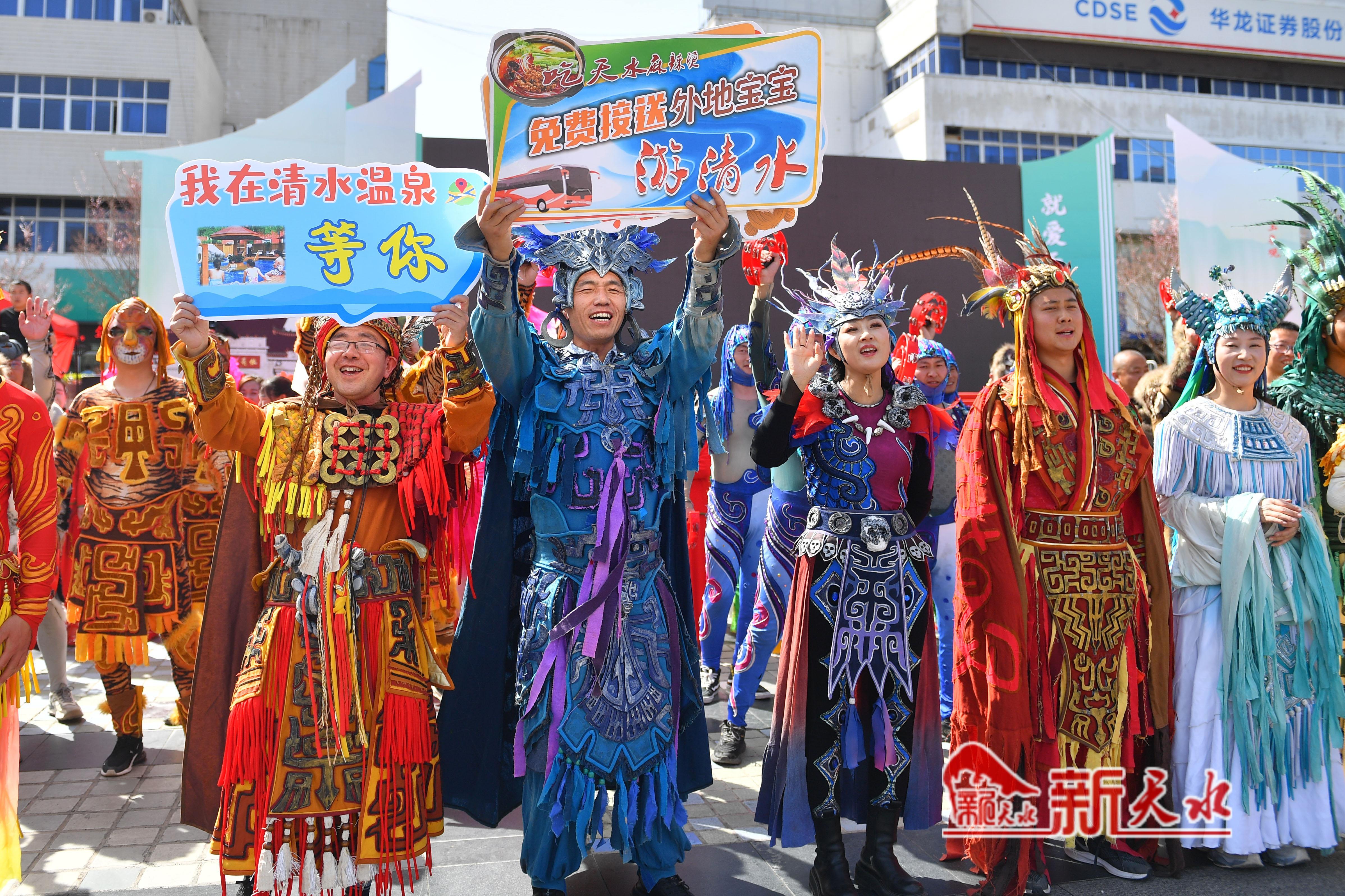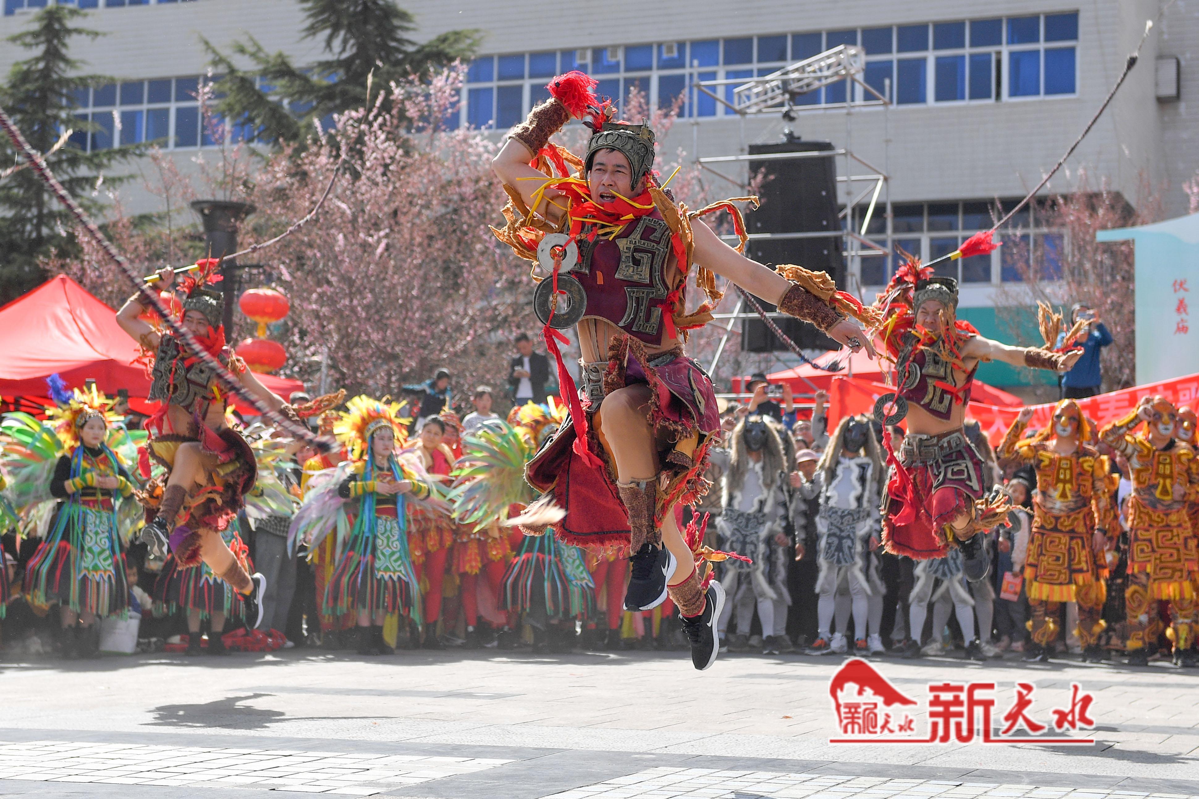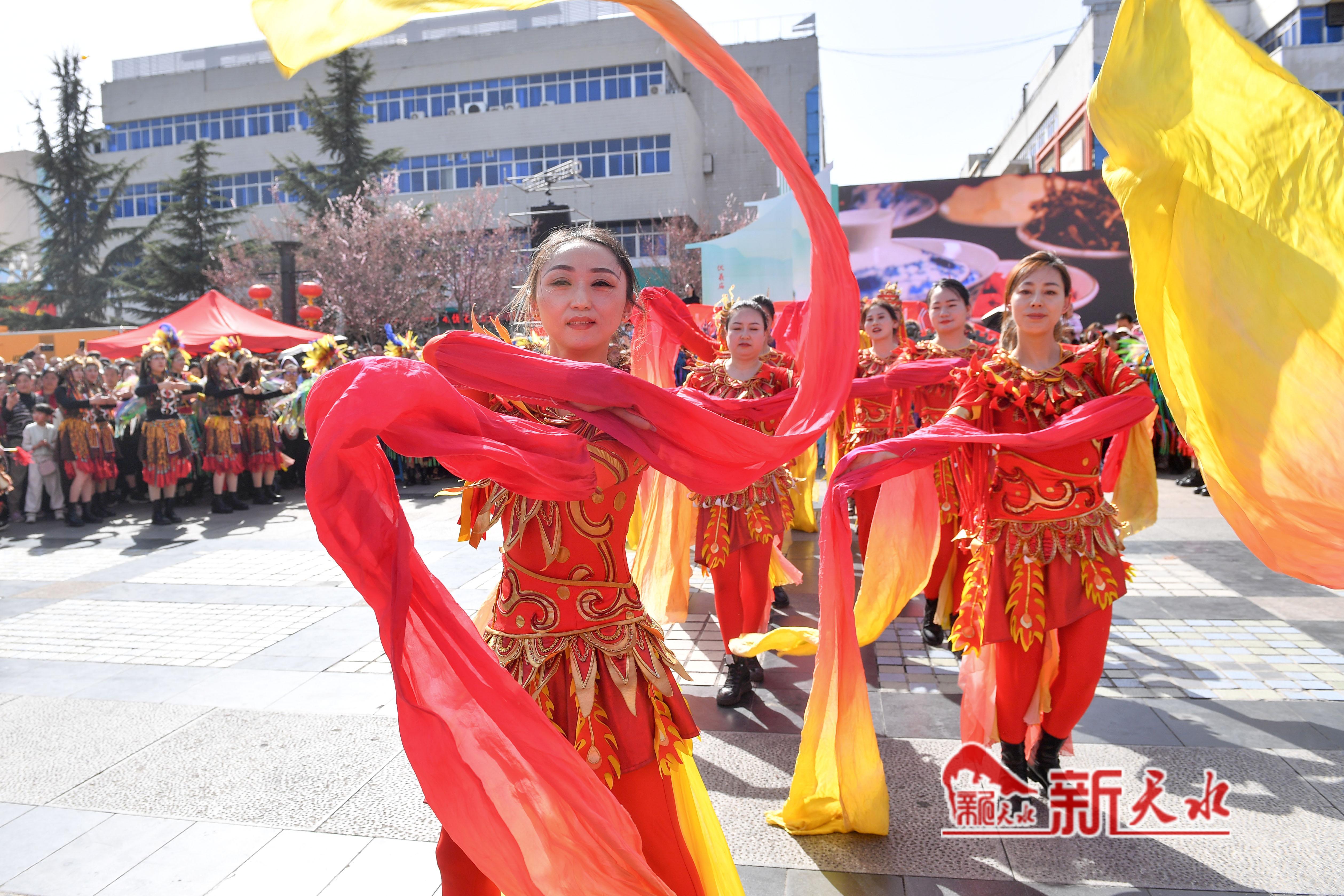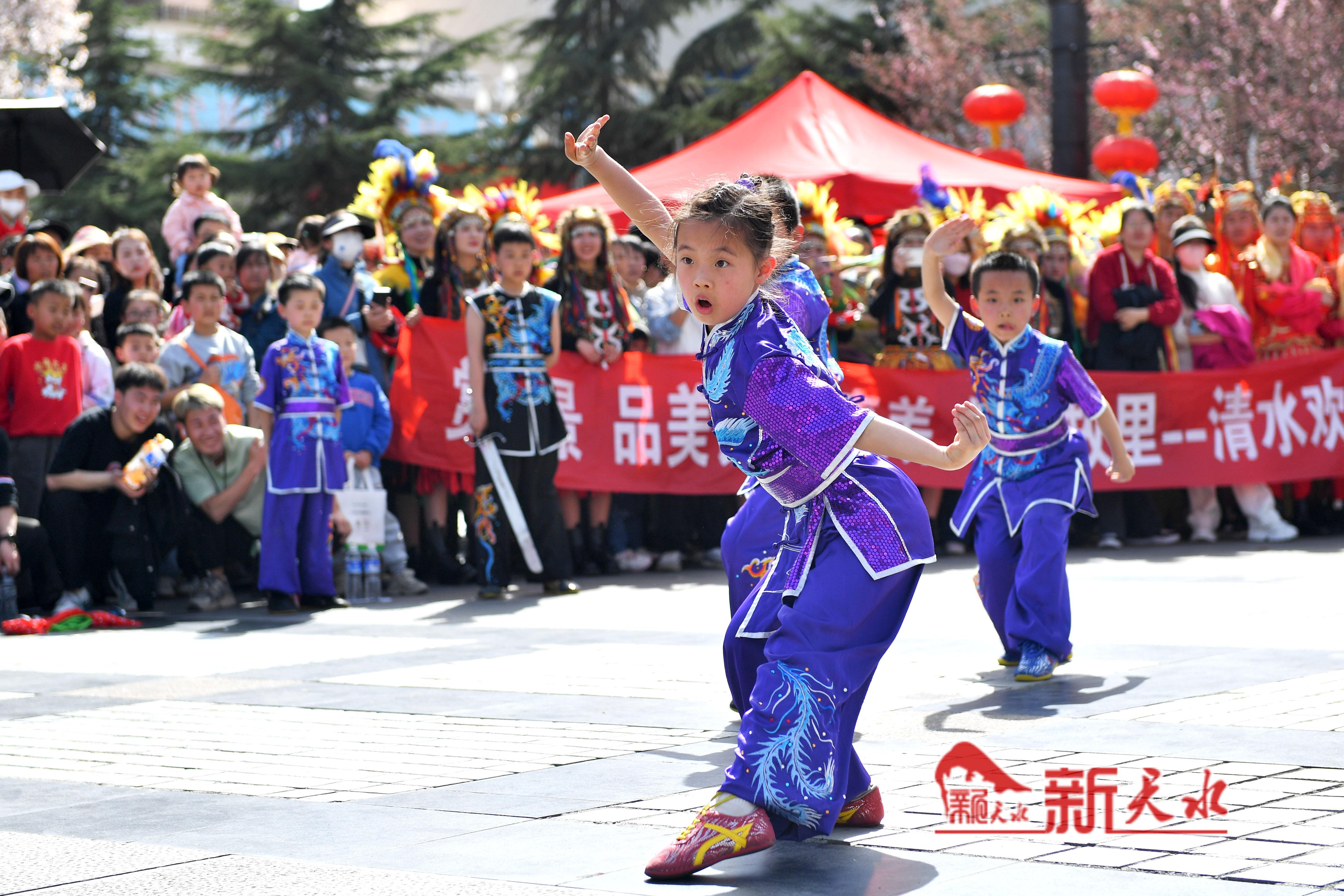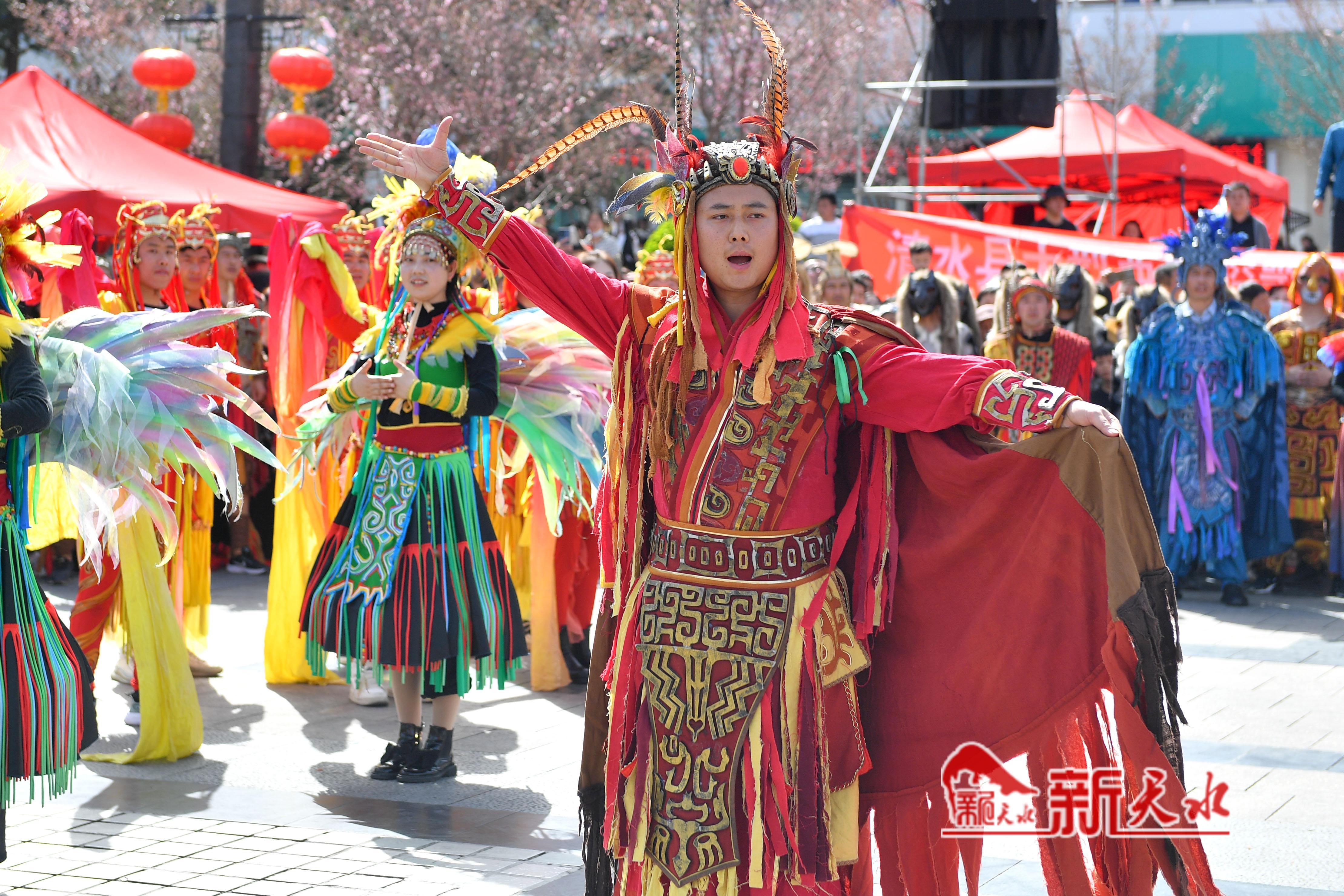 为更好地助力天水麻辣烫爆火出圈,清水县精心策划了丰富多彩的文艺演出,3月31日,在天水市伏羲广场、秦州区龙城广场、天水南站进行了《轩辕大帝》选段、《舞狮》等节目的表演,为各地游客带来一场视听盛宴,同时也进一步打响轩辕故里·康养福地品牌、促进清水文化旅游业的发展。 新天水记者 周文涛 摄