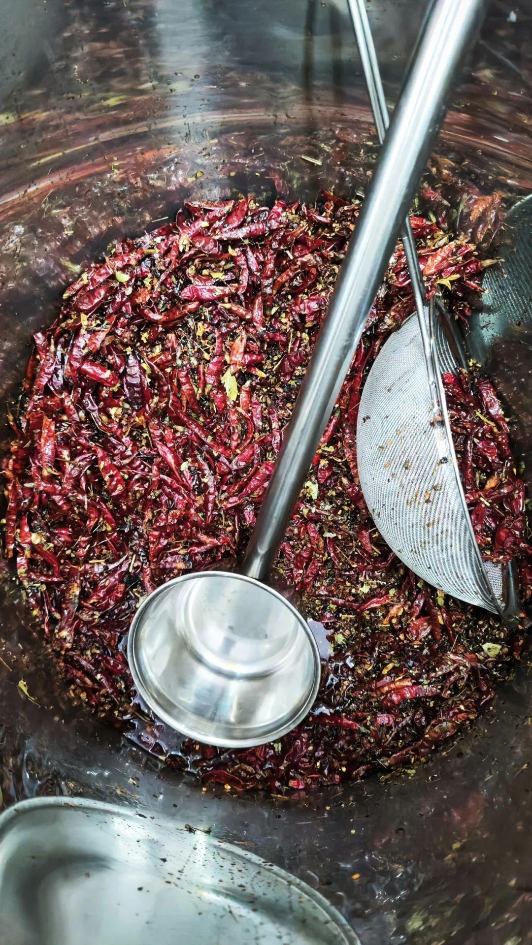 吃天水麻辣烫,就不得不提它的辣椒。一勺勺辣椒油,仿佛浇灌出了天水麻辣烫的灵魂。“天水辣椒看甘谷。”老板杨先生介绍,自家的辣椒都是从甘谷运过来的。
