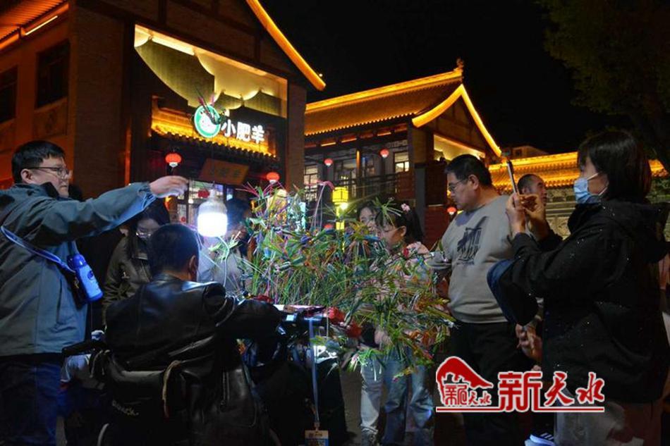 为了让夜市更吸引人,天水古城的布置上增添了许多装饰。星光灯、古风伞……悬挂在顶部,让整个夜市看上去多了几分精致。