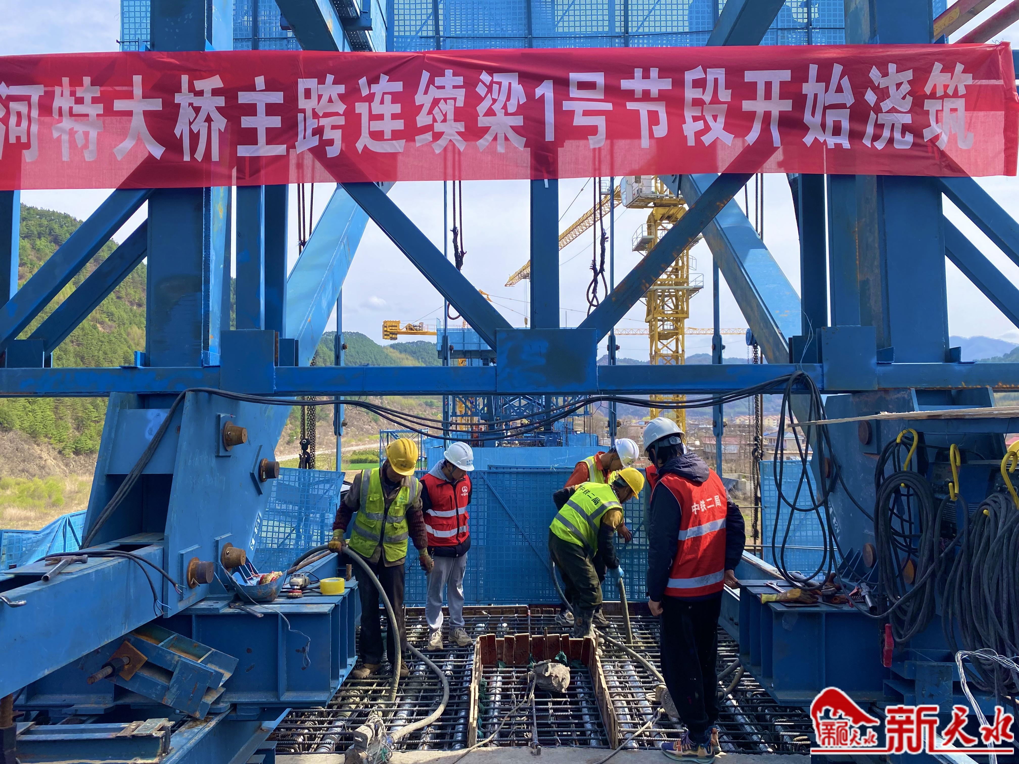 新天水讯【记者侯亚龙】4月8日,经过长达4小时的紧张施工,由中铁城投天陇铁路一标四分部承建的天陇铁路白家河特大桥主跨连续梁“1号节段”成功完成浇筑,标志着天陇铁路全线首个连续梁悬灌首节段施工圆满完成。此次浇筑不仅意味着该桥已正式进入桥梁上部结构的循环施工阶段,更展现了项目团队在复杂环境下的高效施工能力。