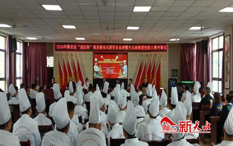 新天水讯【记者裴婷婷 张雷】4月8日,为深挖秦安美食底蕴,叫响“桃里秦安名厨”劳务品牌,培养符合新时代发展的餐饮技能人才,2024年秦安县“成纪杯”桃里秦安名厨劳务品牌暨天水麻辣烫技能大赛在秦安县职业中等专业学校举行。