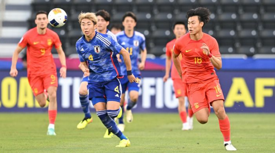 日本队在第八分钟早早取得领先,山田枫喜右路传中,中国队禁区内防守漏人,松木玖生无人盯防轻松推射破门。