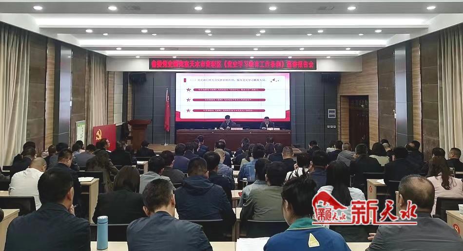 何天鹏强调,要深入贯彻落实习近平总书记关于党史和文献工作的重要论述精神,切实发挥党史部门党的历史和理论研究专门机构作用,做好党史各项工作,推动新时代党史工作高质量发展。要以学习贯彻宣传《党史学习教育工作条例》为契机,持续推进党史研究、资料征集、宣传教育等各项工作,努力提高新时代党史工作科学化、规范化水平。要切实加强新时代革命遗址保护利用工作,更好地发挥红色资源对政治、经济和文化等方面的促进作用,切实把党史学习教育成果转化为干事创业的强大动力,为助推全市经济社会高质量发展提供精神动力和智力支持。