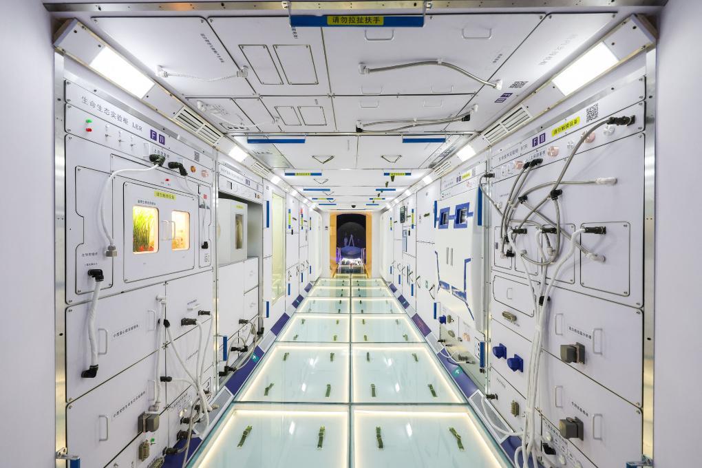 图为2022年11月9日在第十四届中国航展上拍摄的中国空间站组合体展示舱的问天实验舱。新华社记者刘大伟摄