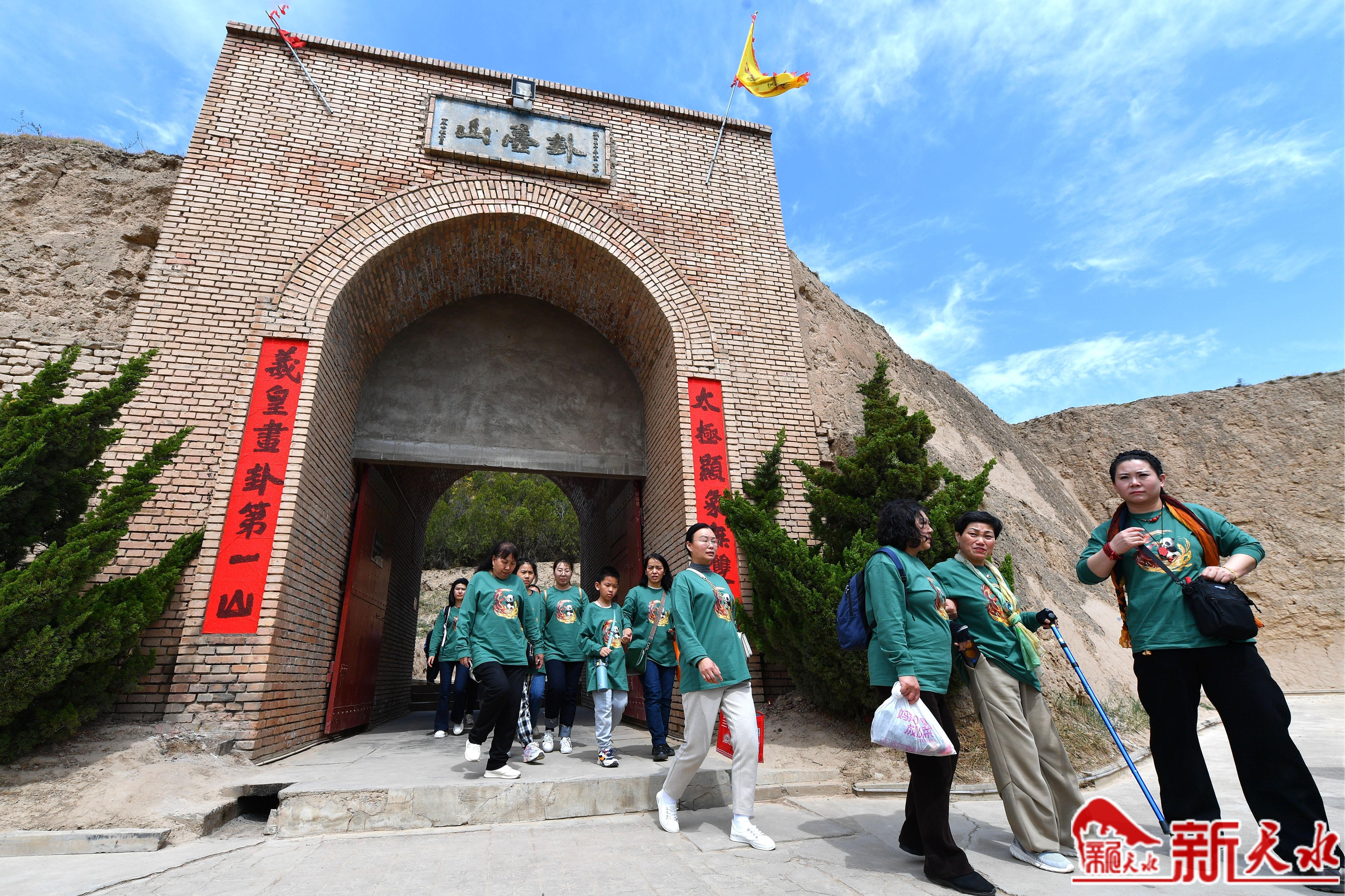4月22日,游客在麦积区卦台山景区游玩。连日来,我市各旅游景区都迎来了客流高峰,全市上下抢抓天水麻辣烫火爆流量开展的系列丰富多彩的活动为天水带来了蓬勃的人气,激发了文旅消费新活力。(新天水记者 周文涛 摄)