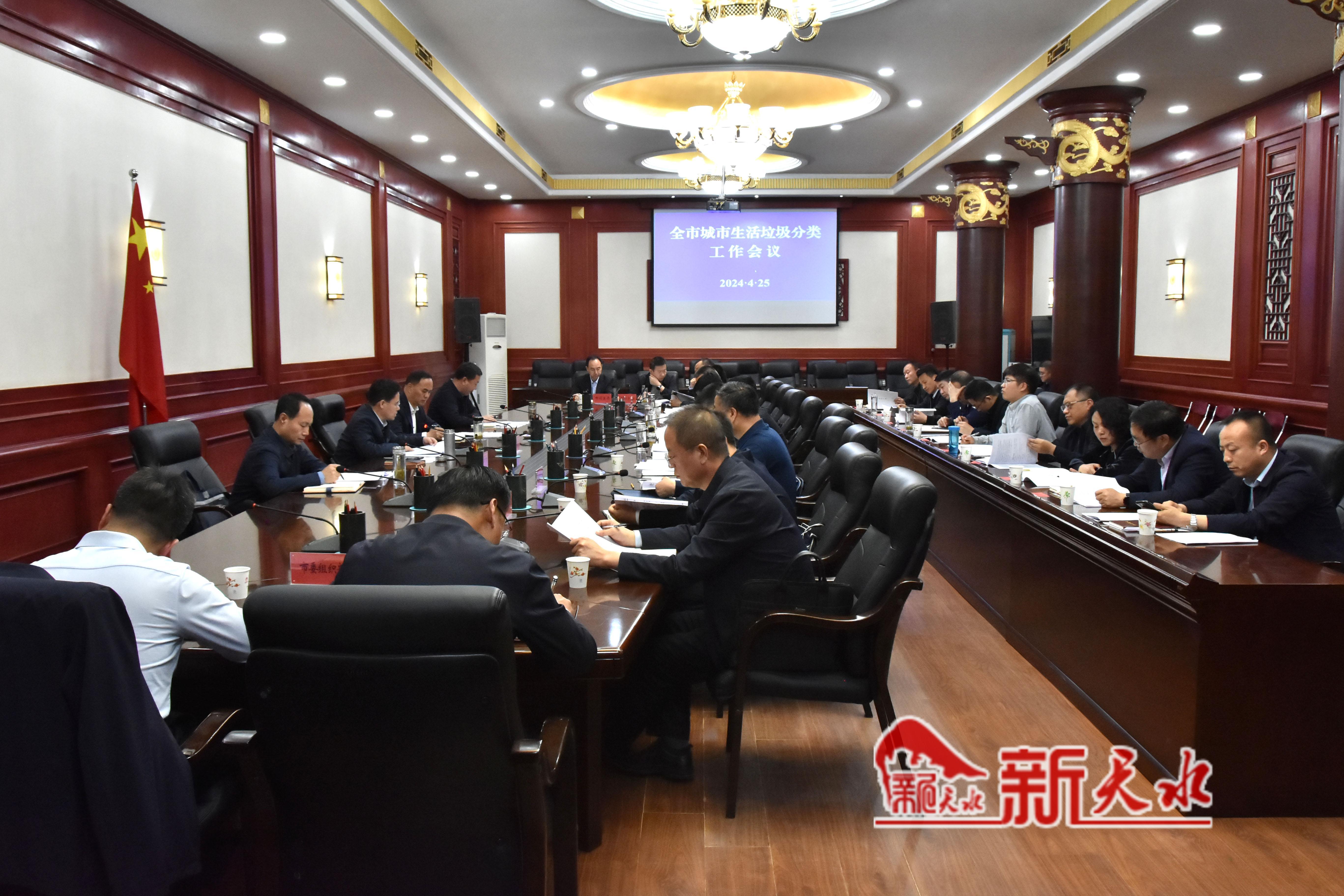 新天水讯【记者马放】4月25日,市委副书记、市长王国先主持召开全市城市生活垃圾分类工作会议,深入学习贯彻习近平总书记关于垃圾分类工作的重要指示批示精神,全面落实国家和省上部署要求,安排部署全市生活垃圾分类重点工作。副市长胡志勇、市政府秘书长马军胜出席会议。