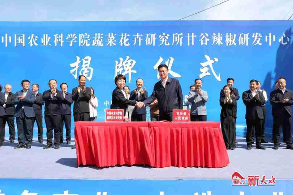 新天水讯【通讯员 谢映波】4月26日,中国农业科学院蔬菜花卉研究所甘谷辣椒研发中心揭牌仪式在甘肃陇上椒农业科技(集团)有限公司举行。