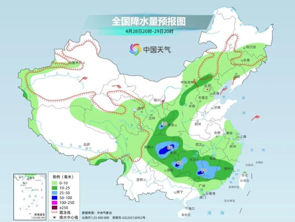 中央气象台预计,28日20时至29日20时,湖北西南部、湖南、江西中南部、福建、广东北部、广西北部、四川盆地、重庆、贵州北部和东部等地部分地区有中到大雨,其中,湖南南部、重庆中西部、贵州东北部等地部分地区有暴雨。