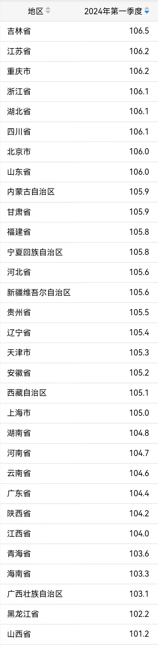 2024年一季度GDP全部出炉,前十强有变,吉林增速领跑