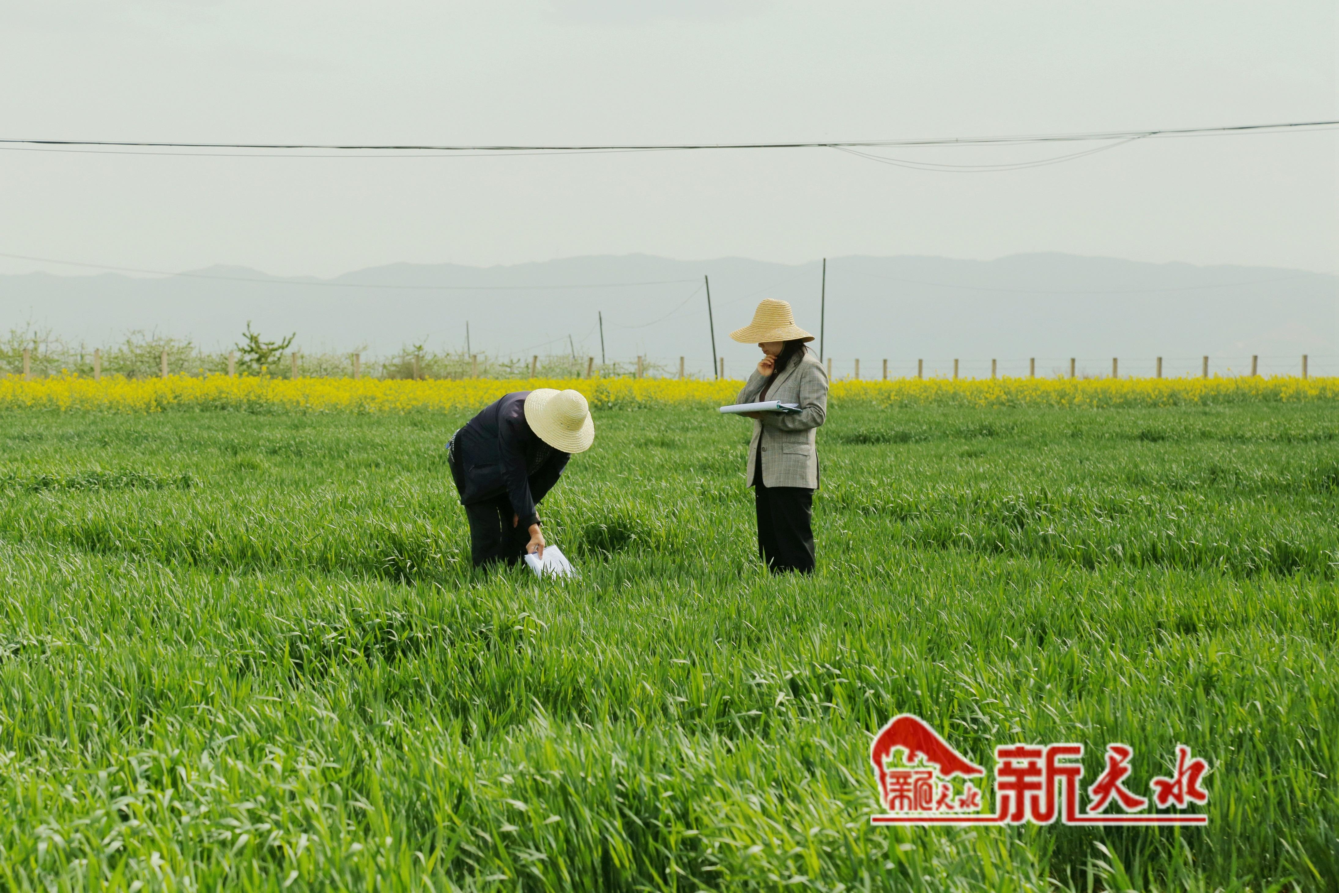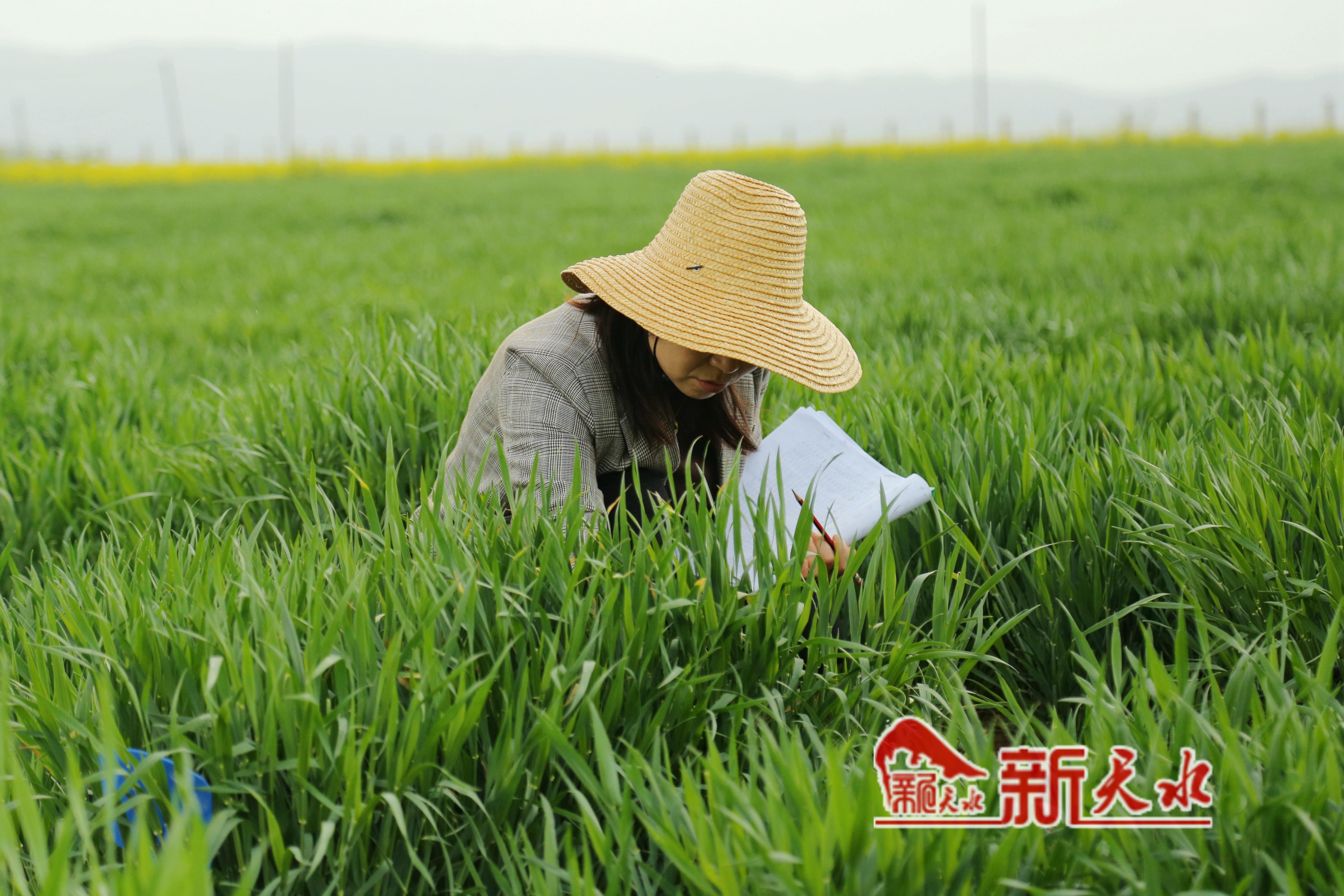 在天水市农科所中梁试验站的育种基地里,半米多高的麦苗随风摇曳、绿波荡漾,市农科所小麦遗传改良创新团队的工作人员穿行在麦田里,或埋头查看秧苗,或奋笔疾书记录,为田间正处于孕穗阶段的2000多份育种材料“把脉问诊”,做好育种标记。