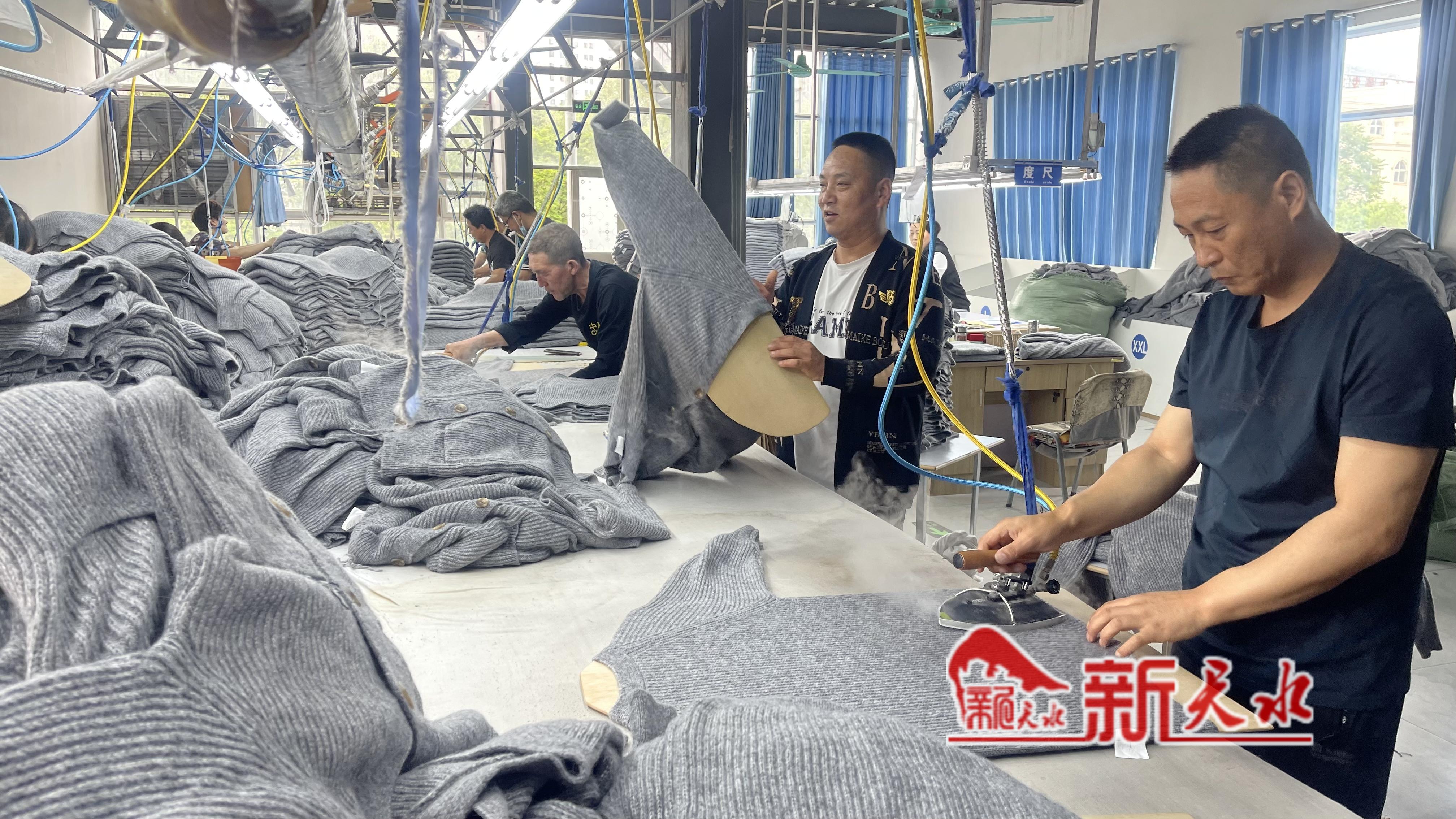 5月9日,走进位于甘谷县大像山镇白云村的天水步隆毛织服饰有限公司,洗水、擦洒补液、熨衣、包装……加工车间里,工人们有序忙碌在各自工作岗位上。