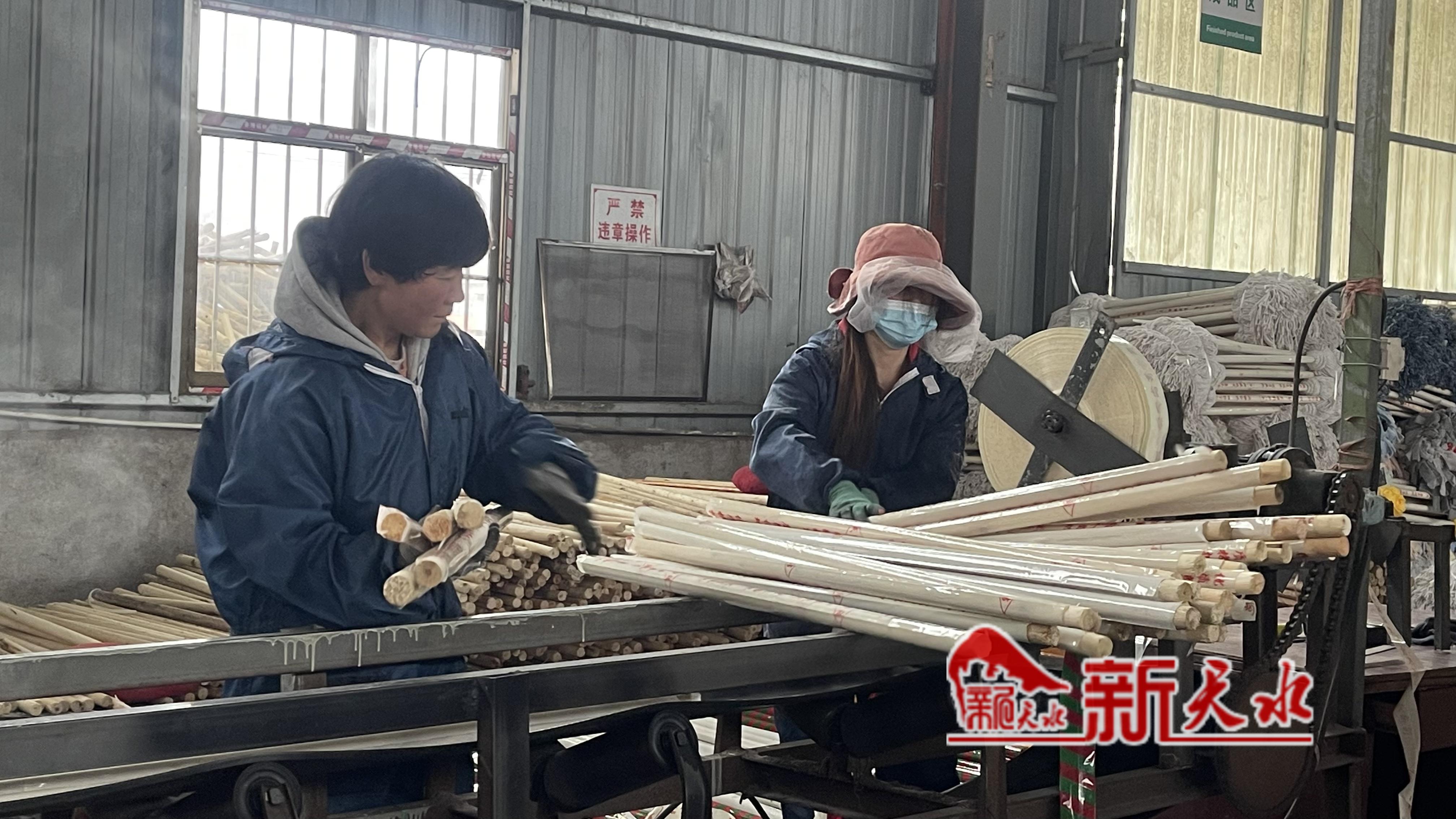 倪徐村党总支部书记毕永军告诉记者,拖把加工厂以前是村上的就业扶贫车间,成立于2018年10月,厂房面积有3000平方米,主要从事拖把、高粱拖把的加工及销售,塑料制品、日用清洁用品的销售。车间现有员工25人。