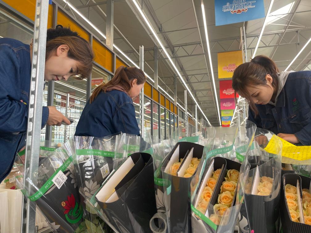 这个基地是昆阳街道墩子村和兴旺村的集体资产。“我们的玫瑰鲜切花产品发往国内30余个城市,部分玫瑰品种还远销国外。”墩子村乡村振兴专员朱婷介绍,目前基地共有56名工人,每人每月底薪为4000元,根据年终的产量评比,工人还可以获得额外奖励,一年的综合收入能达到6万元左右。