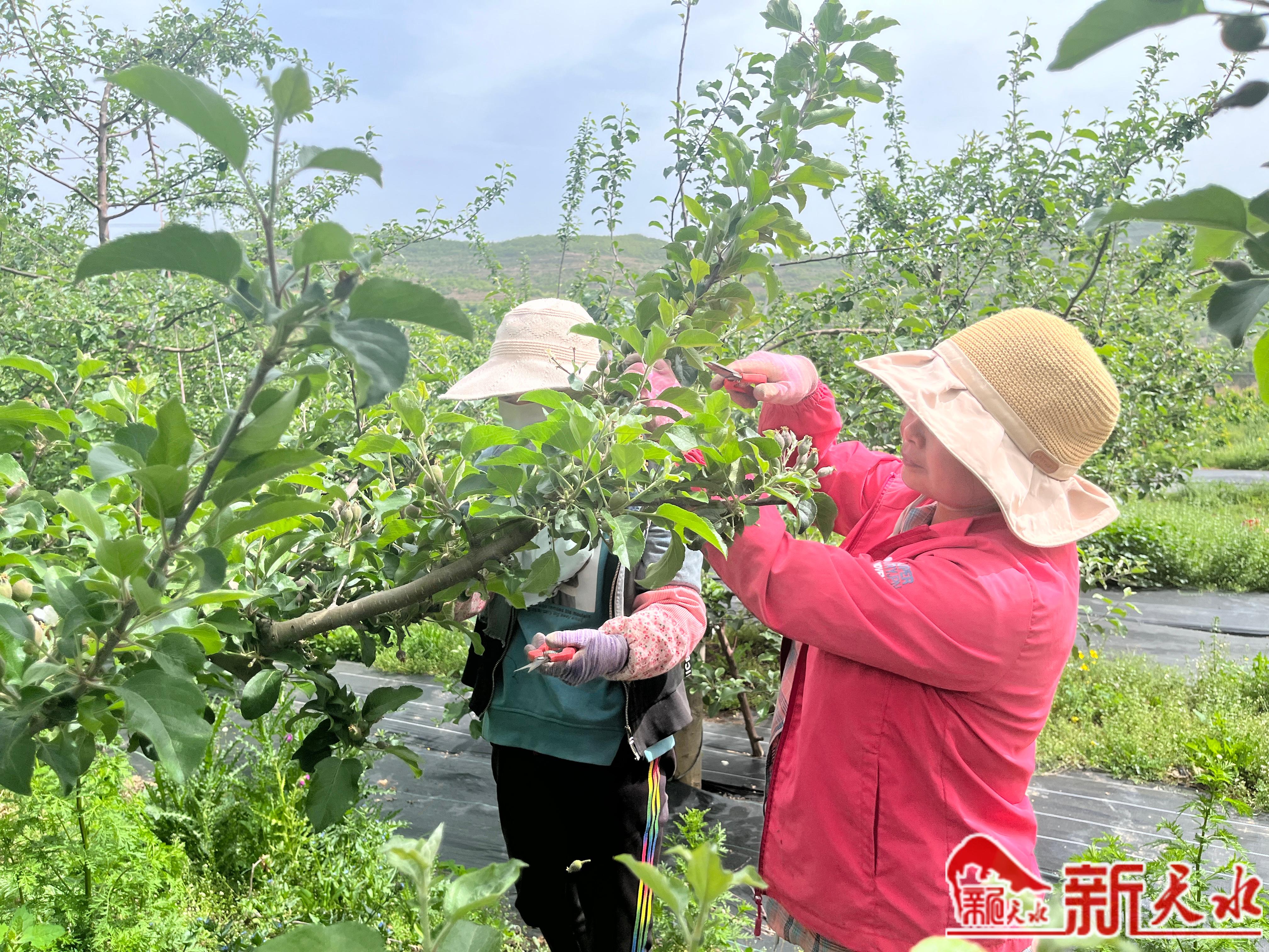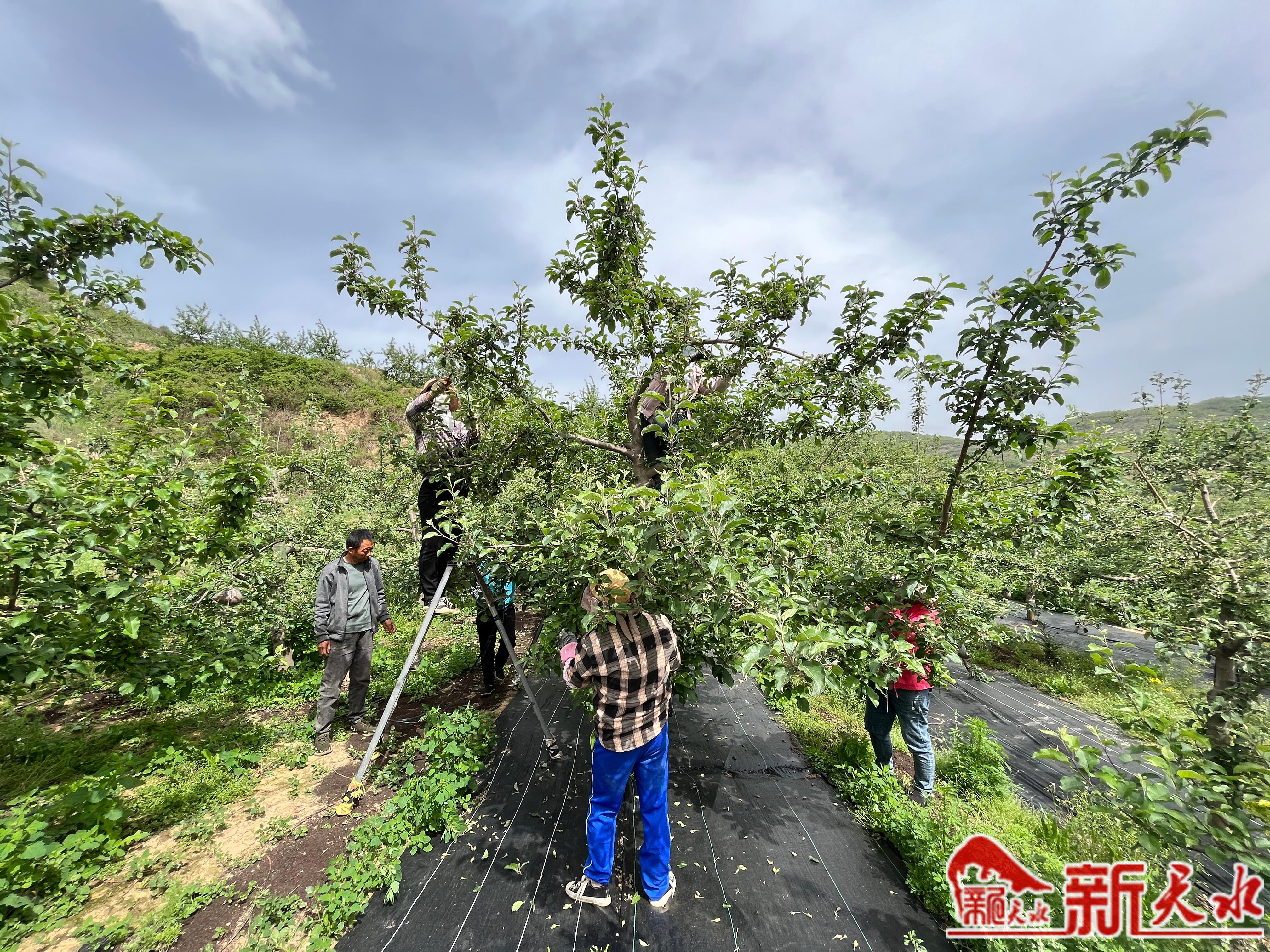 眼下,富士苹果处于幼果期,为了增产增效,连日来,在天水丰缘种养殖农民专业合作社的红富士果园基地,十几名工人正忙着疏果、拧枝。“基地有1000多亩果园,全部都是红富士。今年的长势很好,坐果率非常高。”合作社果园管理员张爱国说。
