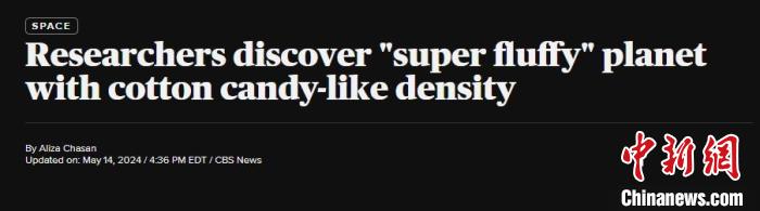 中新网北京5月15日电 据美联社、美国哥伦比亚广播公司(CBS)网站报道,国际天文学家当地时间14日宣布发现一个“超级蓬松”的巨大行星,密度堪比棉花糖。