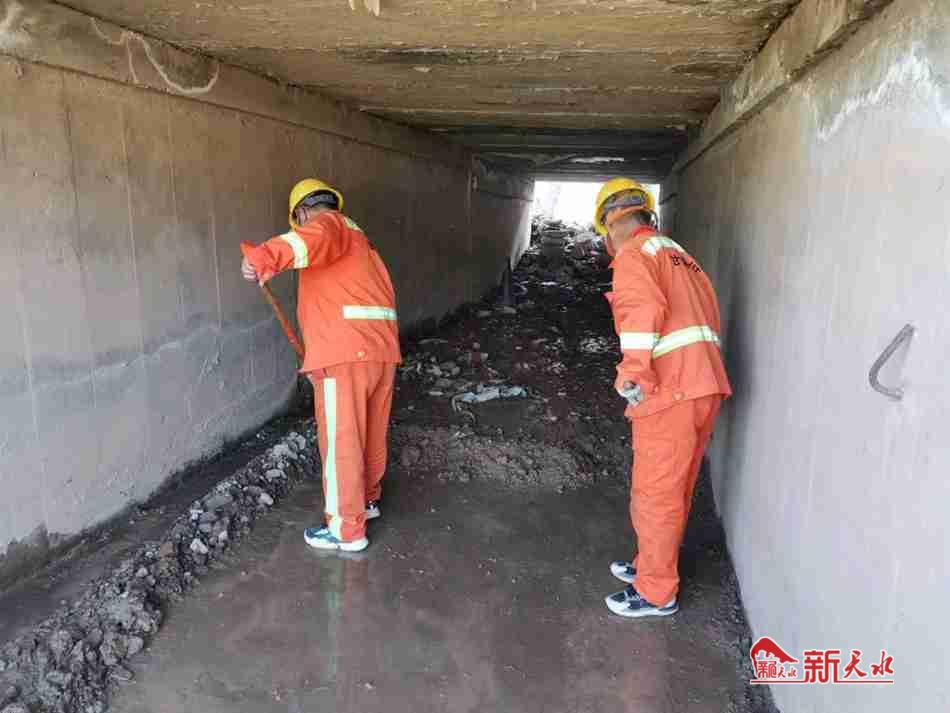 此次集中对涵洞洞口外、洞身内的淤泥等垃圾以及洞顶处的垃圾进行了全面清理,并加大汛期排查力度,发现隐患及时处治,确保辖区所有涵洞功能完整、运行安全、流水顺畅。(胡艳红)