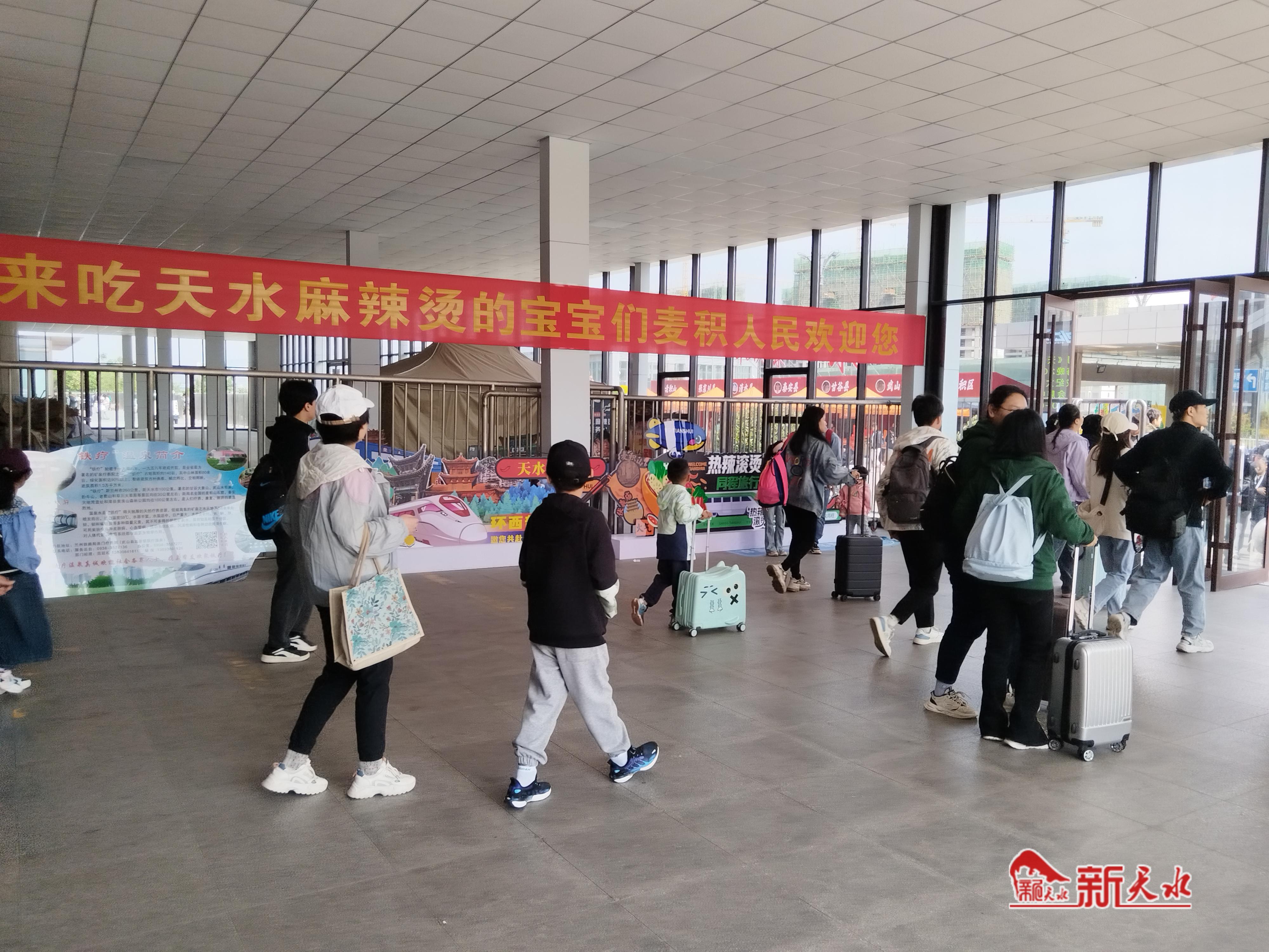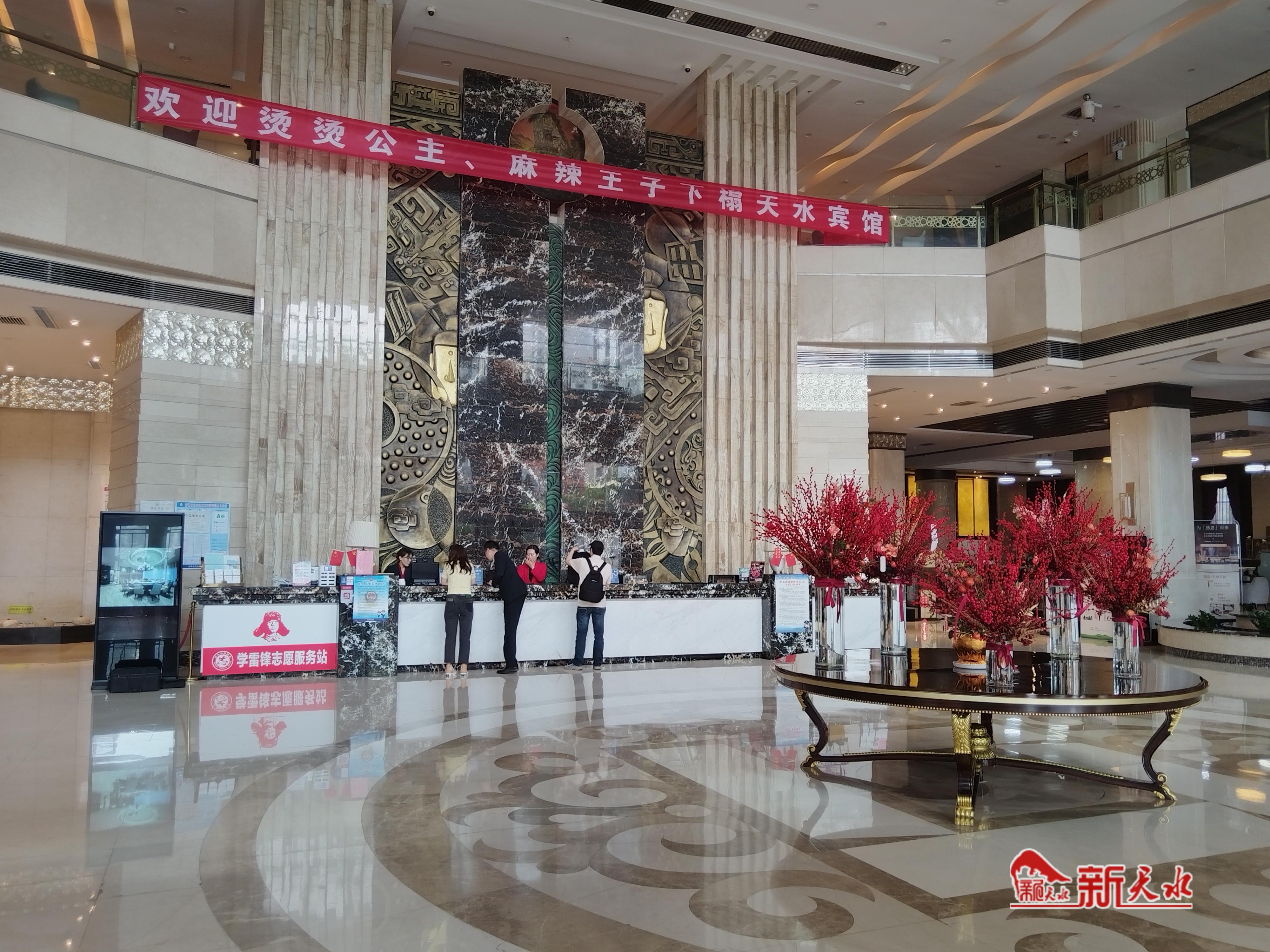 走进天水宾馆,只见大厅内悬挂的欢迎“烫烫公主、麻辣王子”入住酒店的横幅格外醒目、亲切,为迎接外地游客,天水宾馆在天水南站开展了接站服务,在天水南站、天水古城安排人员发放优惠券,提供志愿服务。