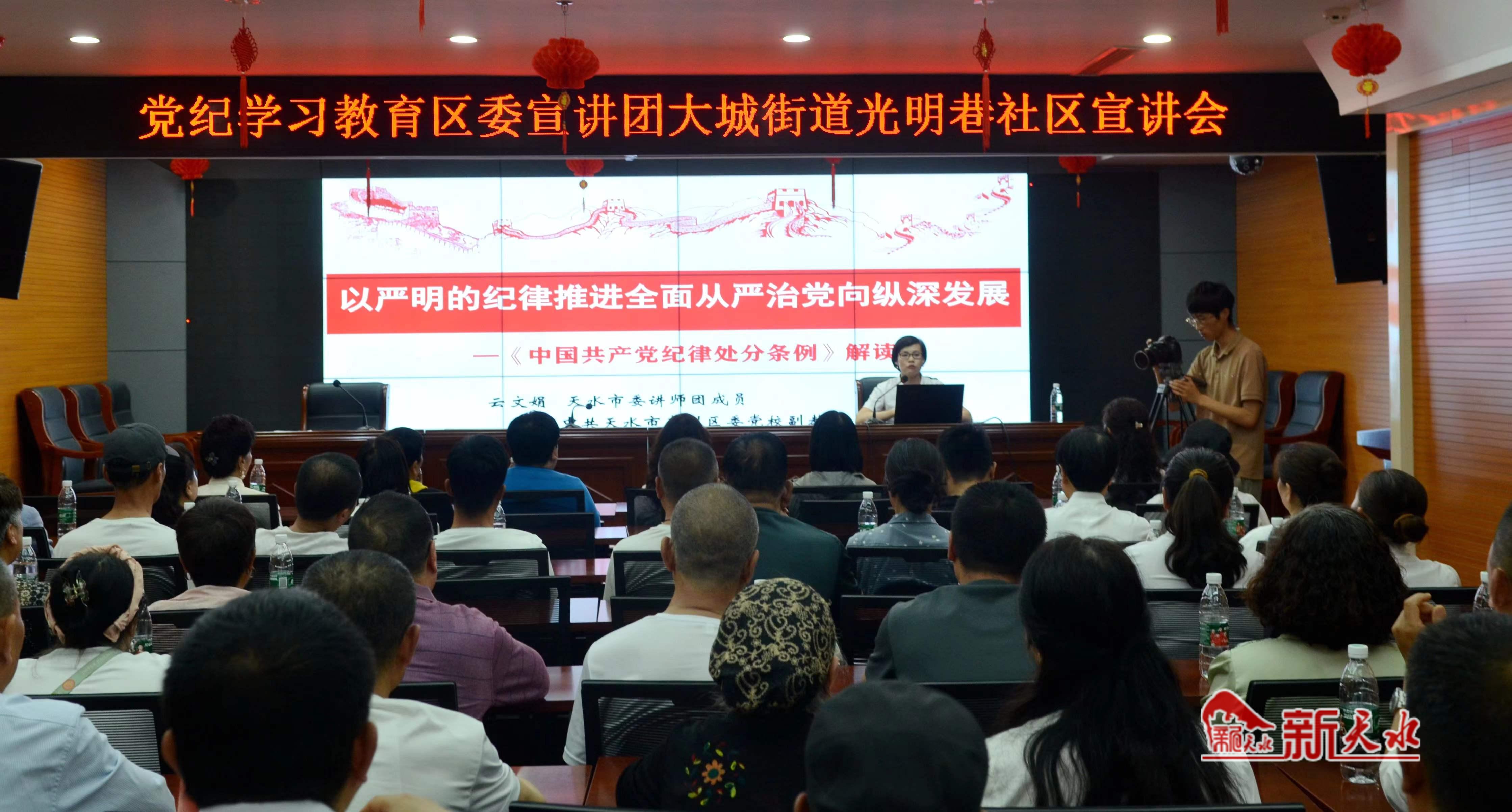 “我们在开展线下与线上宣讲中,紧盯新业态新就业群体、农民党员等,以区域性党群服务中心、村(社区)党群服务中心、新时代文明实践站等为载体,采取‘宣讲面对面’、宣讲报告会等形式,开展多样性线下辅导宣讲230余次。”天水市委宣传部有关负责人说,我们还充分发挥主流媒体和新媒体平台作用,市级新闻媒体开设“党纪学习教育”专栏,转发权威媒体发布的《条例》解读文章、稿件158篇(条),营造良好学习氛围,教育引导党员自觉维护党规党纪权威性和严肃性。