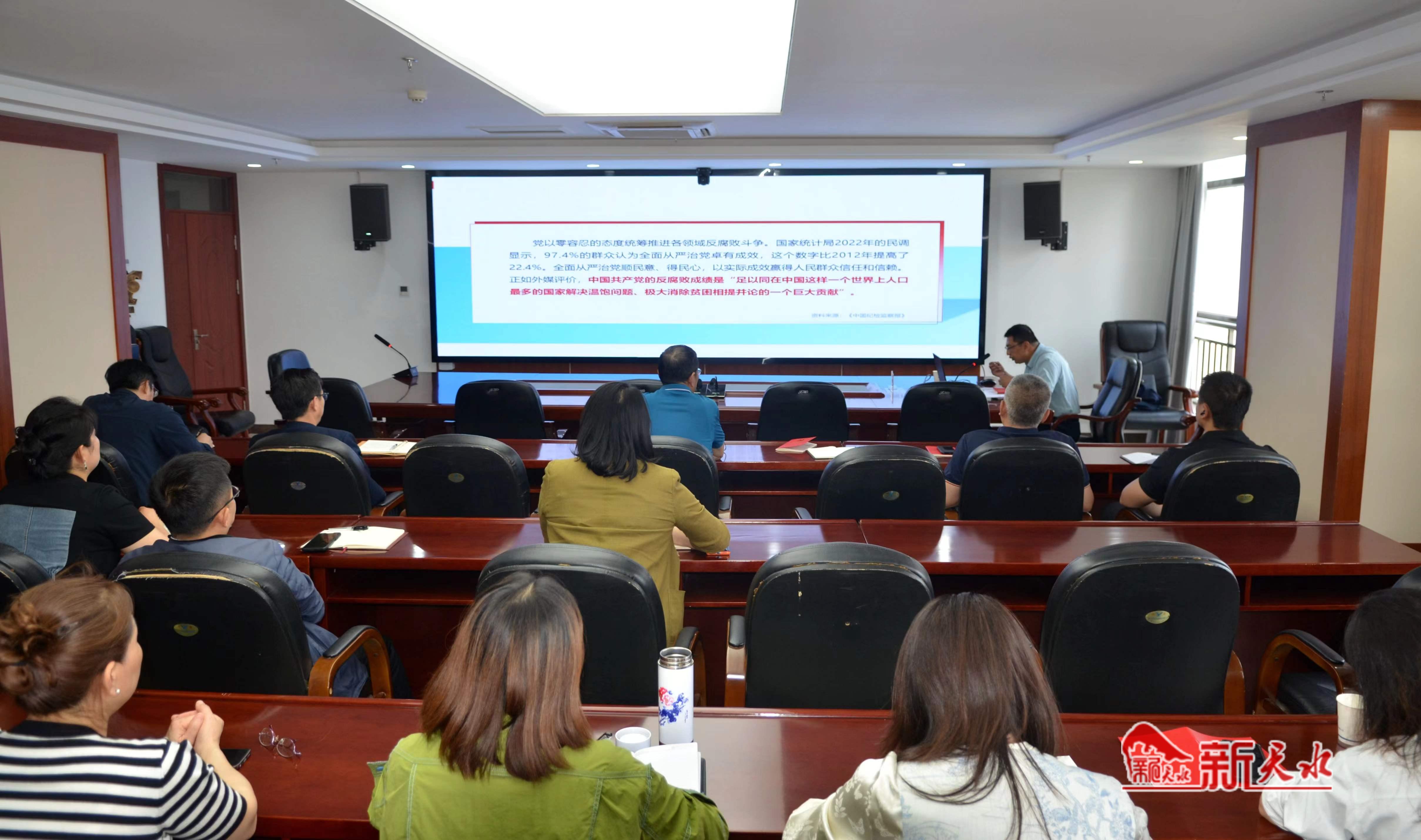 5月20日,在天水市住房和城乡建设局会议室,受邀请的甘肃林业职业技术学院马克思主义学院副院长、天水市委宣讲团成员常文峰正在为机关党员、干部作党纪学习教育专题辅导讲座。偌大的会议室座无虚席,主讲人常文峰讲得声情并茂、有声有色,大家听得津津有味、入脑入心。