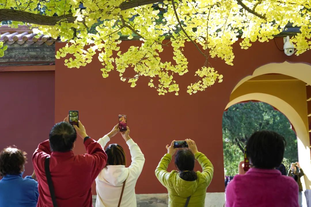 在用手机纪录美景的游客们