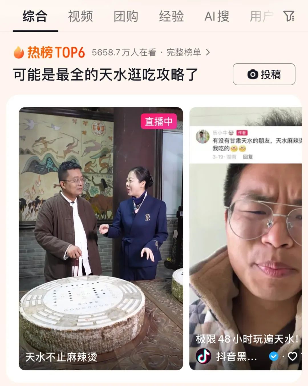 这场城市文旅的自推,与抖音平台正在发展的城市文旅项目呼应起来。如何助力更多小城市,通过短视频平台提高自己的认知度?在当地政府、平台等多方联系下,小黑、大眼、红鲤鱼与绿鲤鱼等旅游博主前往天水,一场名为“天水不止麻辣烫”的直播,带领线上500多万人次游览伏羲庙、麦积山石窟和天水市博物馆等景区。