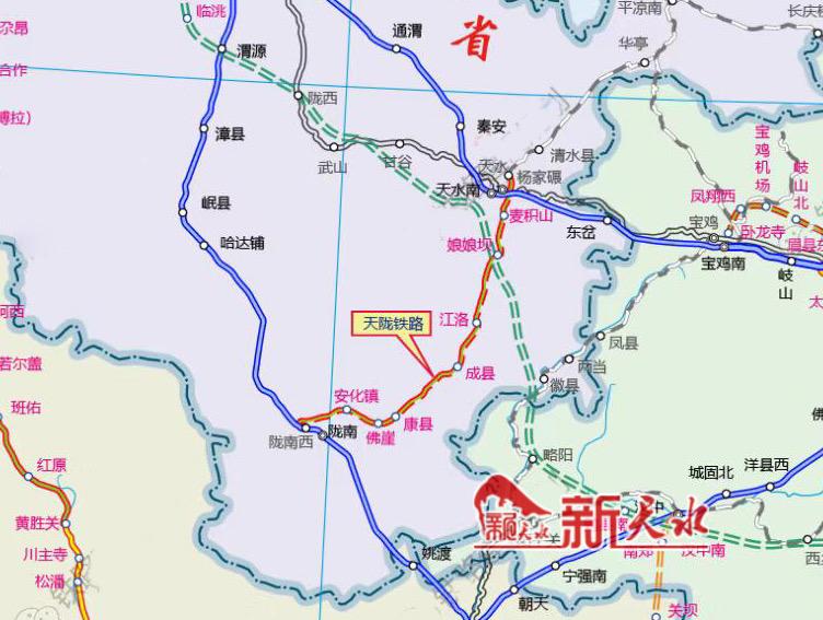 天水至陇南铁路经天水市麦积区、秦州区,陇南市徽县、成县、武都区,最后接入兰渝铁路陇南西站。线路正线全长215.258公里,其中隧道长165.804公里,全线设站17座。天陇铁路是《甘肃省“十三五”铁路发展规划》的重点建设项目,也是天平铁路南延线工程以货运为主兼顾客运的干线铁路项目。项目北连银西铁路,南接兰渝铁路,建成后可与陇海铁路互联互通,构建成陇东南“十字型”铁路网络体系。