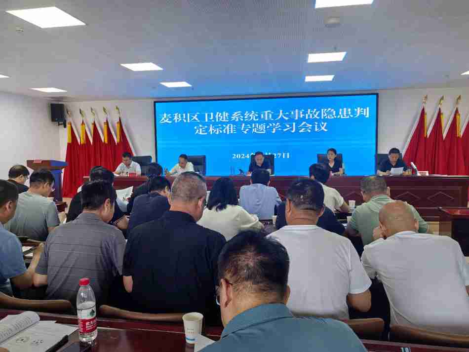 新天水讯 5月27日,麦积区卫健局召开全区卫健系统重大事故隐患判定标准专题学习会议,深入开展重大事故隐患判定标准落地行动和精准检查执法能力建设,切实提升全区卫健系统重大事故隐患辨识和判定能力。