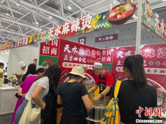 5月25日,第二十届中国(深圳)国际文化产业博览交易会现场,参观民众在天水麻辣烫摊位前排队。 中新社记者 高红超 摄
