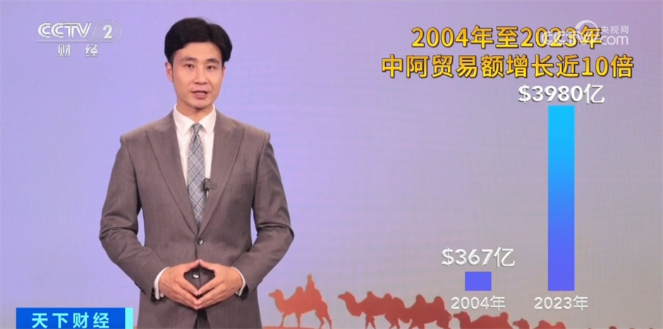 商贸是最早连通中阿文明的纽带。两千多年前,中阿在古丝绸之路上“舟舶继路、商使交属”。如今,在中阿合作论坛机制推动下,中国连续多年稳居阿拉伯国家第一大贸易伙伴国地位——中阿贸易额从2004年的367亿美元增至2023年的3980亿美元,贸易额增长近10倍。