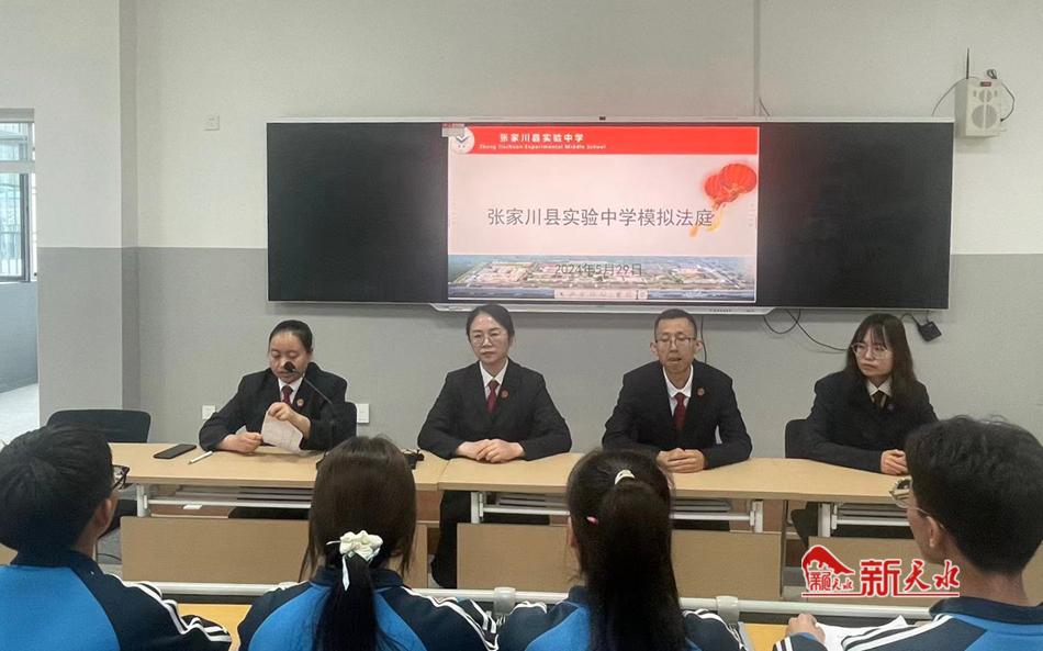 新天水讯 5月29日,张家川县人民法院在张家川县实验中学开展“模拟法庭进校园”法治宣传活动,200多名师生共同上了一堂别开生面的法治教育课。