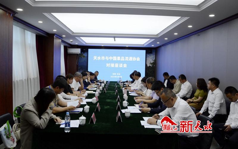 新天水讯【记者童强】6月3日,在“‘樱’为有你·‘桃’你喜欢”2024年“甘味”农产品暨天水秦州大樱桃产销对接系列活动启动仪式结束后,天水市与中国果品流通协会召开对接座谈会,就果品产业的发展趋势、市场需求以及合作机会进行深入交流和探讨。中华全国供销合作总社科教社团部一级巡视员、中国果品流通协会常务副会长刘婷,天水市副市长康泰来参加座谈。