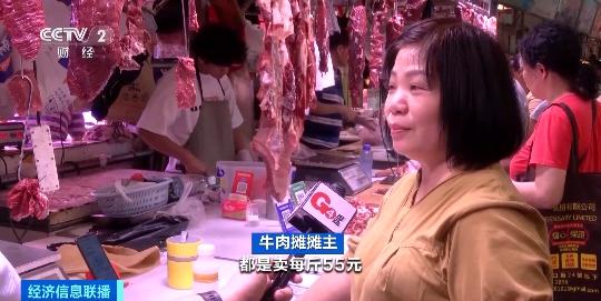 牛肉摊摊主:最热销是吊龙、雪花、肥牛。每斤卖55元,现在每斤卖50元。
