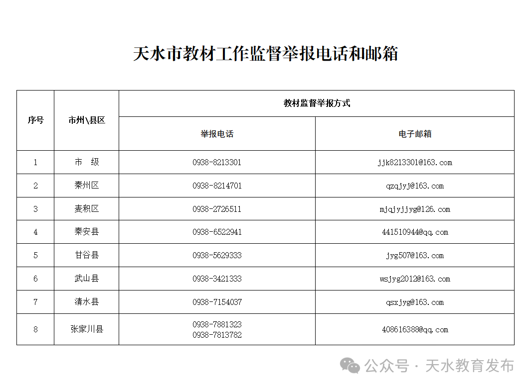 附件:天水市教材工作监督举报电话和邮箱
