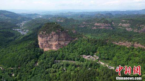 6月4日,甘肃天水,在深山的怀抱之中的麦积山石窟。麦积山石窟始建于十六国后秦时期,因延续时间长,造像数量众多、造型优美,被誉为“东方雕塑馆”,是中国四大石窟之一。(无人机照片)